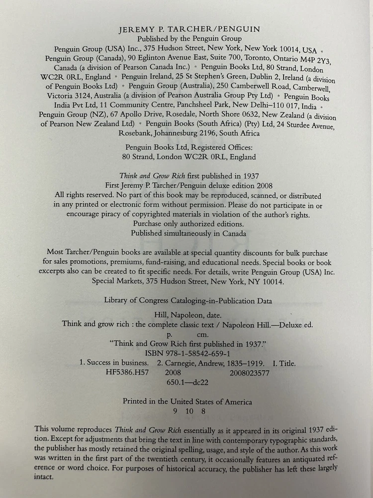 | Book Title | Think and Grow Rich Deluxe Edition : the Complete Classic Text |