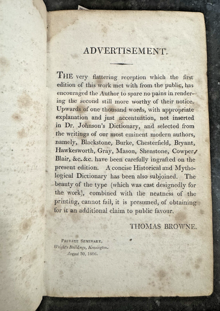 Front board is separated, One interior crack, pages still well held, minor stains throughout.
