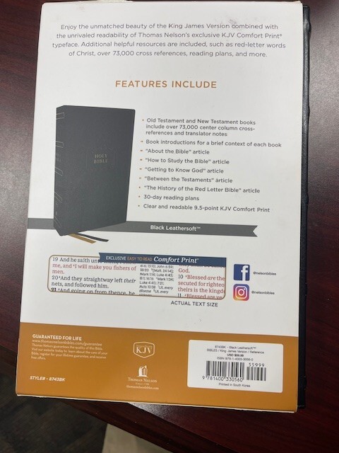 This KJV Bible is beautifully crafted with a premium leathersoft cover that’s both elegant and durable. The center-column cross-references make study effortless, while the comfortable print is easy on the eyes. Red-letter text highlights Jesus' words, adding clarity. Perfect for daily reading and deep study, it’s a high-quality Bible that feels great in hand and looks stunning. Highly recommend for anyone wanting a reliable and user-friendly KJV edition!