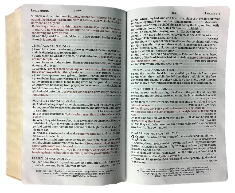 The KJV Reference Bible - from respected Bible publisher Thomas Nelson - provides a compact book with large print font that provides the cross references at the end of the appropriate verses, enabling a seamless and uninterrupted reading experience of God's Word that will open you to a lifetime of exploring the harmony of Scripture. Features Include: Over 40,000 cross-references at the end of verses Full +20,000 translator notes Clear and readable Thomas Nelson KJV Comfort Print Line-matched large-print type Classic verse-by-verse layout for easy navigation Portable personal-size format, perfect for everyday Words of Christ in red 10-point print size Product Information: Title: KJV, End-of-Verse Reference Bible, Personal Size Large Print, Genuine Leather, Black, Red Letter, Comfort Print Format: Genuine Leather Number of Pages: 1888 Vendor: Thomas Nelson Publication Date: 2022 Dimensions: 9.50 X 6.25 (inches) Weight: 2 pounds 7 ounces References: Cross References|End-of-Verse Text Layout: Single Column Text Color: Red Letter Jay Dee Books Free Shipping Free 30 Day Return Policy Same Business Day Handling Bibles are enclosed in Poly Bag and Shipped in Box Spread the Word!