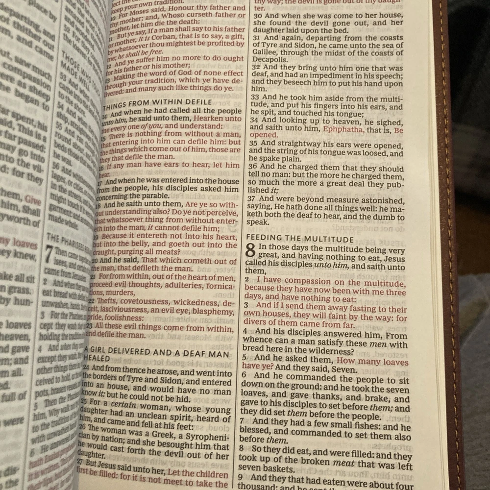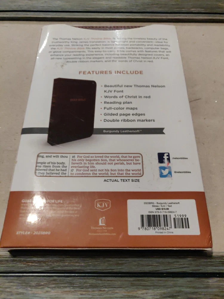 | Features | Bonded Leather, Bookmark Ribbon, Center Column Reference, Lay Flat, Word of God in Red |