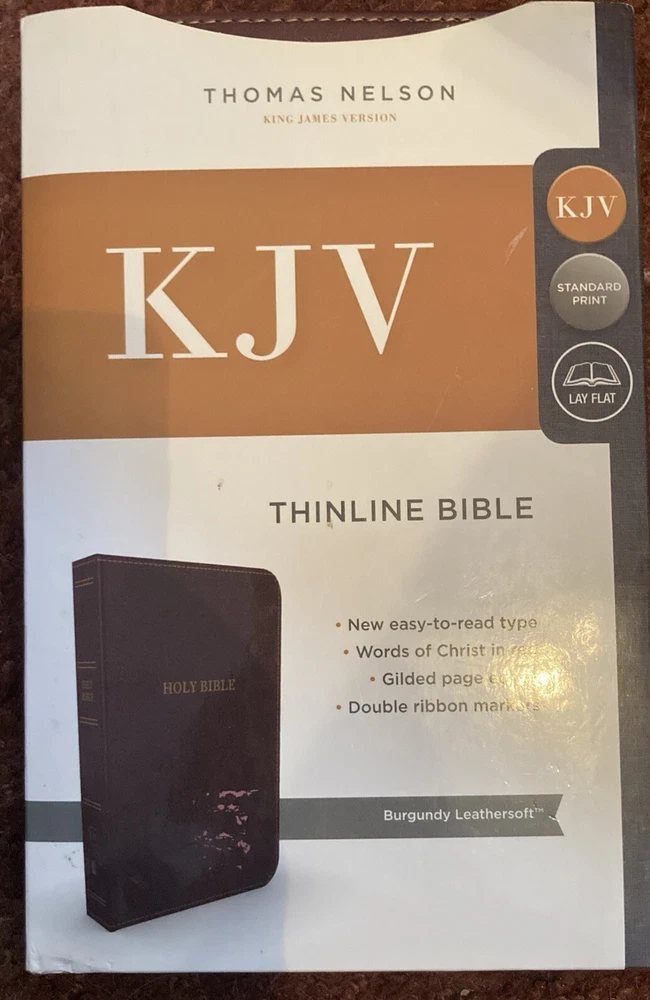 Thomas Nelson King James Lay Flat Holy Bible Standard Print Burgundy Leather KJV. New.