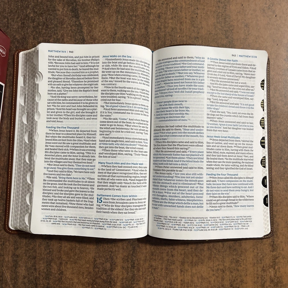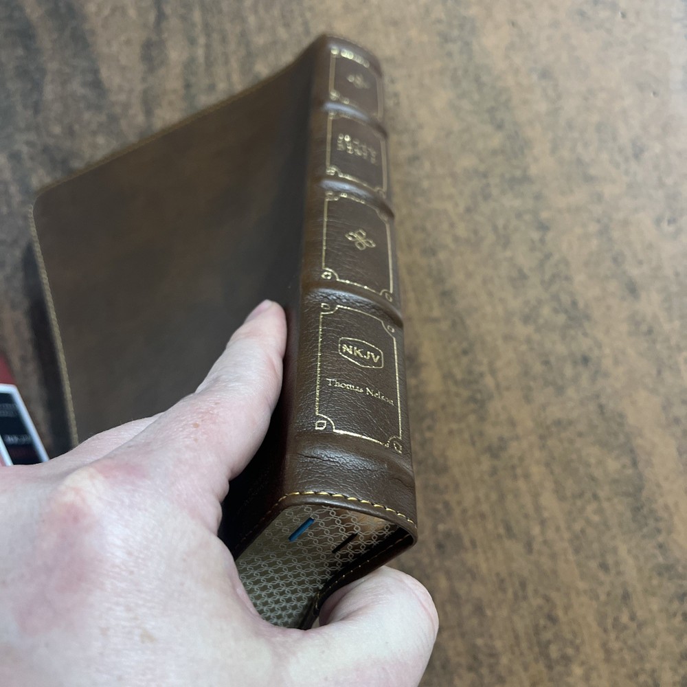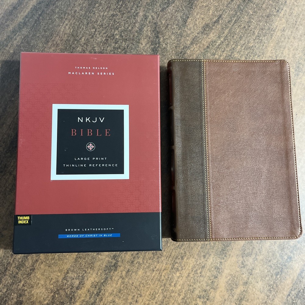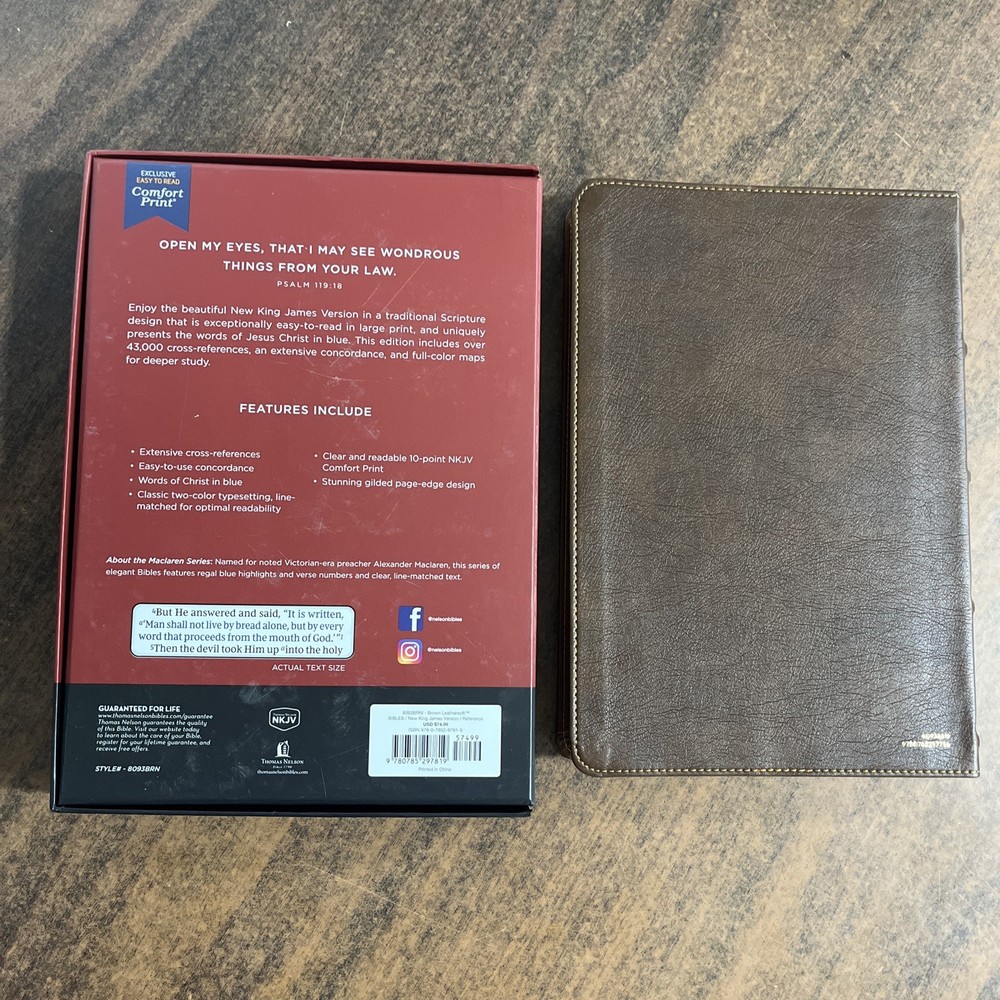 | Book Title | NKJV, Large Print Thinline Reference Bible, Blue Letter, Maclaren Series, Leathersoft, Brown, Thumb Indexed, Comfort Print : Holy Bible, New King James Version |