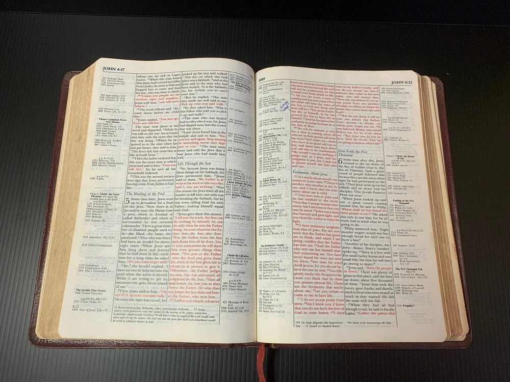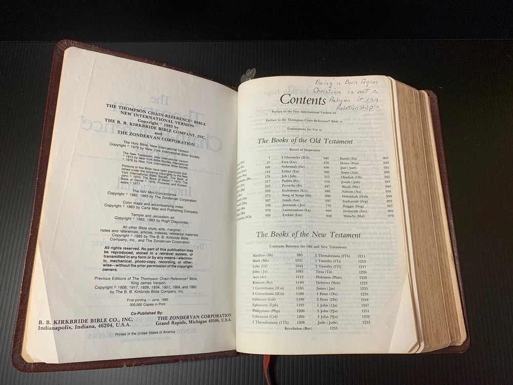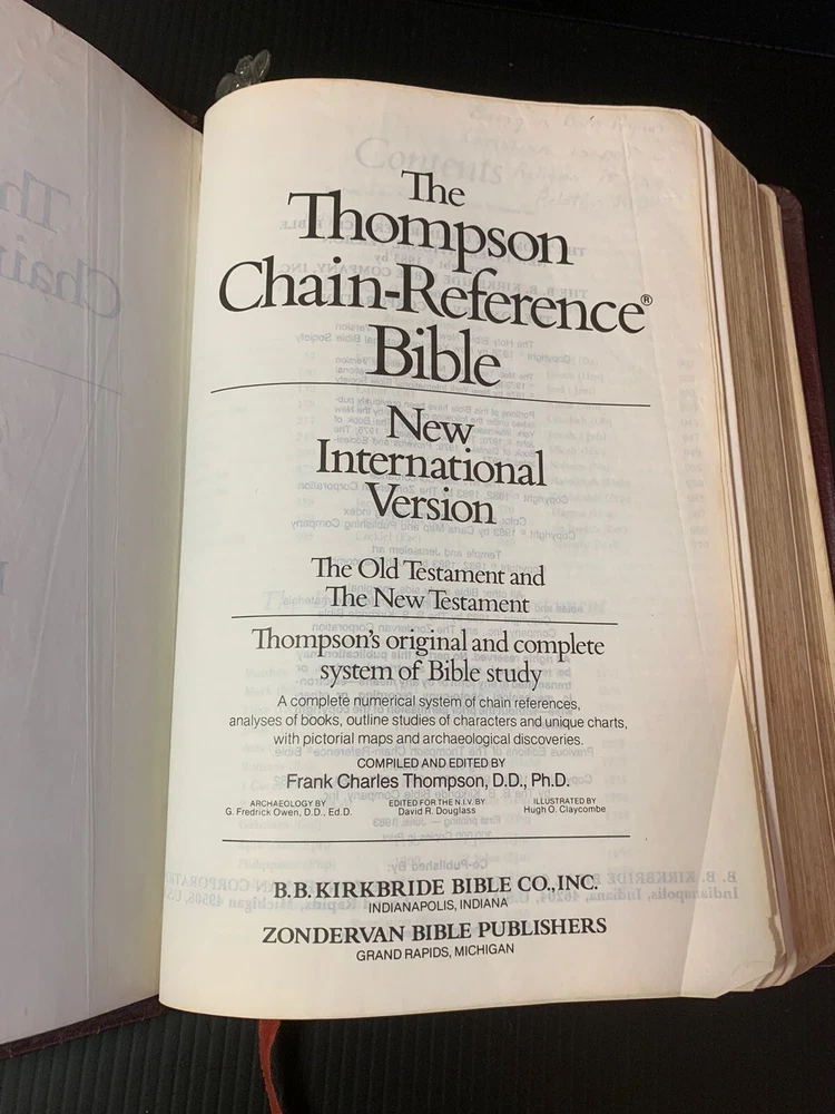Thompson Chain Reference Bible 1983 NIV (1978) Bonded Leather Red Letter Vintage. This Bible is in used condition with wear on the binding. There is a little writing and some of the rear pages have detached from the binding. See pics for better idea of condition.