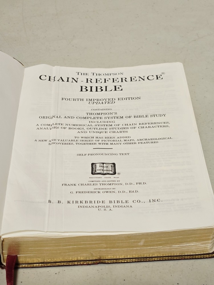 Thompson Chain Reference Bible 4th Improved Edition B.B. Kirkbride 1982, Leather, Burgundy