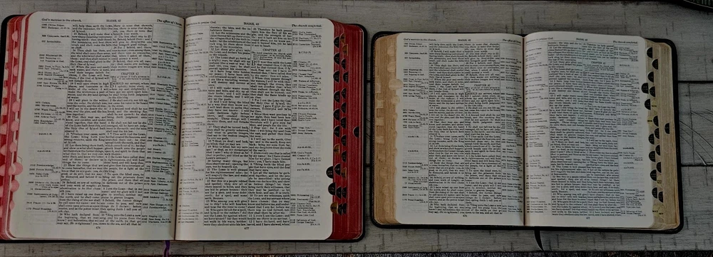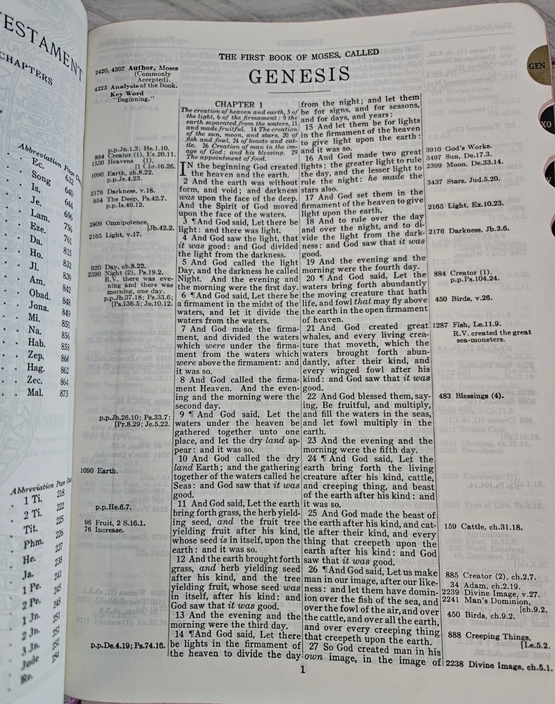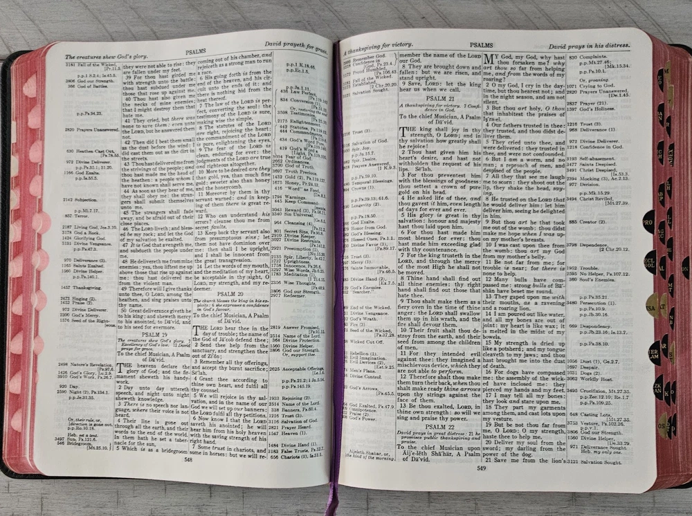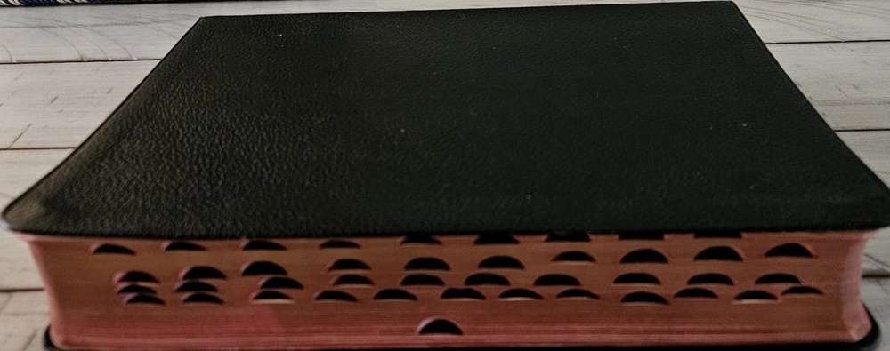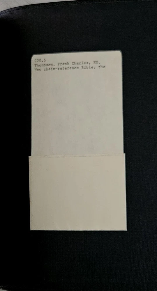 This Bible is a treasure! The 1957 KJV Thompson Chain Reference in large print is beautifully preserved—almost like new despite its age. The leather cover feels sturdy, and the chain-reference system makes study effortless. The crisp pages and clear text show no wear, and the vintage library card adds a charming touch of history. Perfect for collectors or anyone who loves a well-crafted, easy-to-read Bible. A rare find in such excellent condition!
