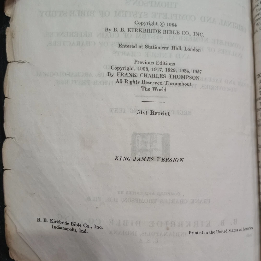 Thompson Chain Reference Bible KJV Bible 1964 Kirkbride Black Morocco Leather Brand: Kirkbride Model: Thompson Chain Reference, KJV Inventory# BOOK1...
