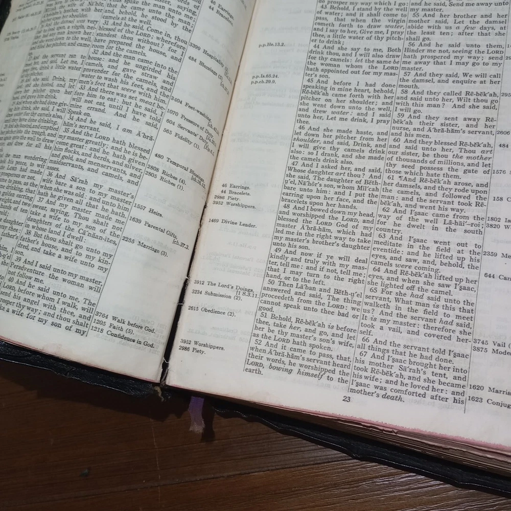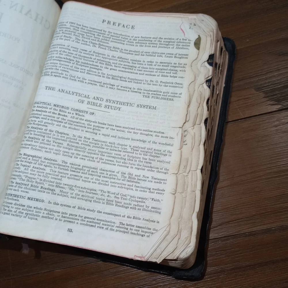 | Features | Illustrated, Leather Bound, Study helps, Page edge index tabs, one ribbon marker |