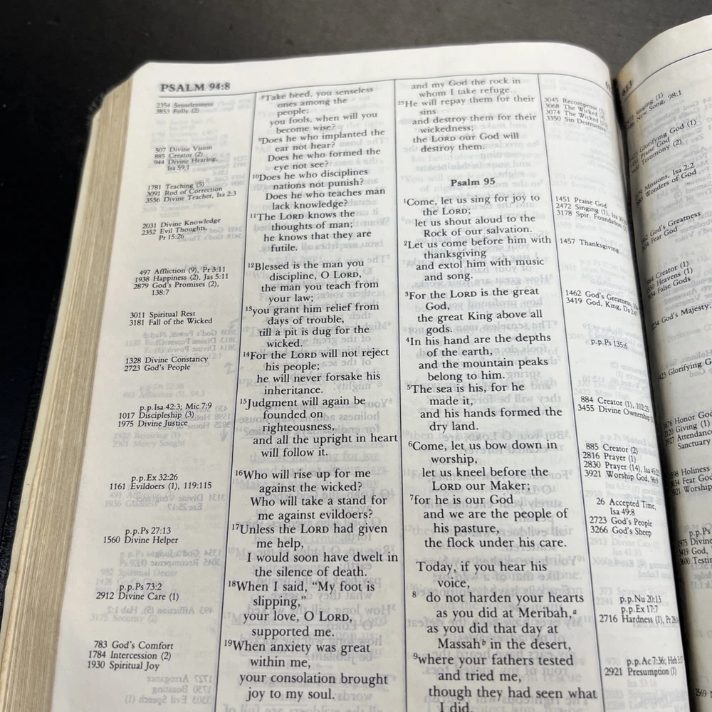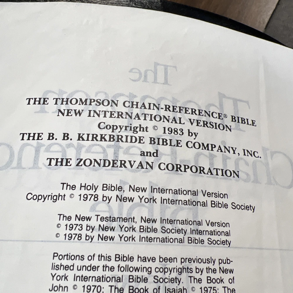 Dive into the world of spiritual wisdom with the Thompson Chain Reference Bible, a timeless edition published by Zondervan in 1983. This Bible is bound in supple leather, promising durability and a comfortable feel as you explore its pages. The New International Version (NIV) translation is rendered in clear, understandable English, making it accessible to a broad audience seeking religious guidance. The Holy Bible, encompassing a vast array of religious and spiritual genres, is curated for readers who cherish the depth of biblical narratives. Authored by a diverse group of writers, it stands as a testament to the enduring power of faith and the unifying voice of God's word. The red letter edition adds an additional layer of significance, highlighting the spoken words of Jesus Christ.