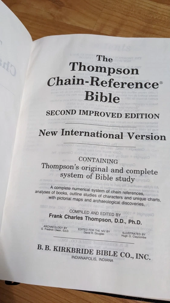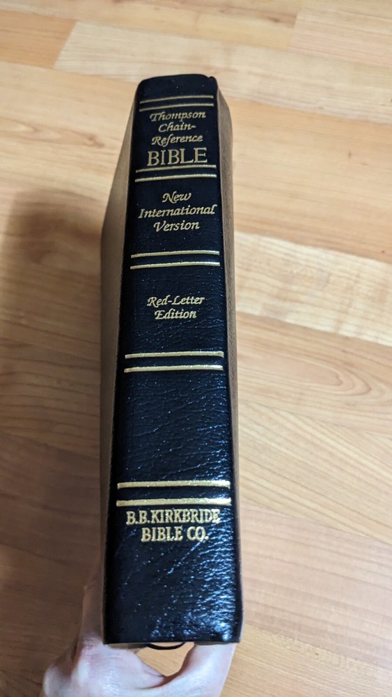 This beautiful black leather-bound Thompson Chain Reference Bible published by B.B. Kirkbride in 1990 is a must-have for any serious Bible collector or aficionado. The Bible is written in English and is a nonfiction narrative type. It has a vintage touch and is branded by B.B. Kirkbride. The Bible is in excellent condition and is perfect for anyone looking for a reliable and spiritual reading material. It contains the red letter B.B. Kirkbride, making it a unique and valuable item. The book is also personalized and has no ex libris or signed pages. Get your hands on this one-of-a-kind Thompson Chain Reference Bible today no highlights or writing only missing a page front see last photos.