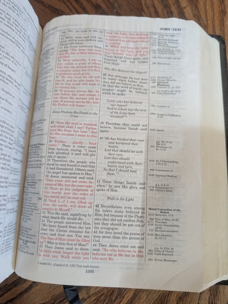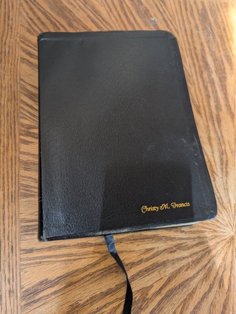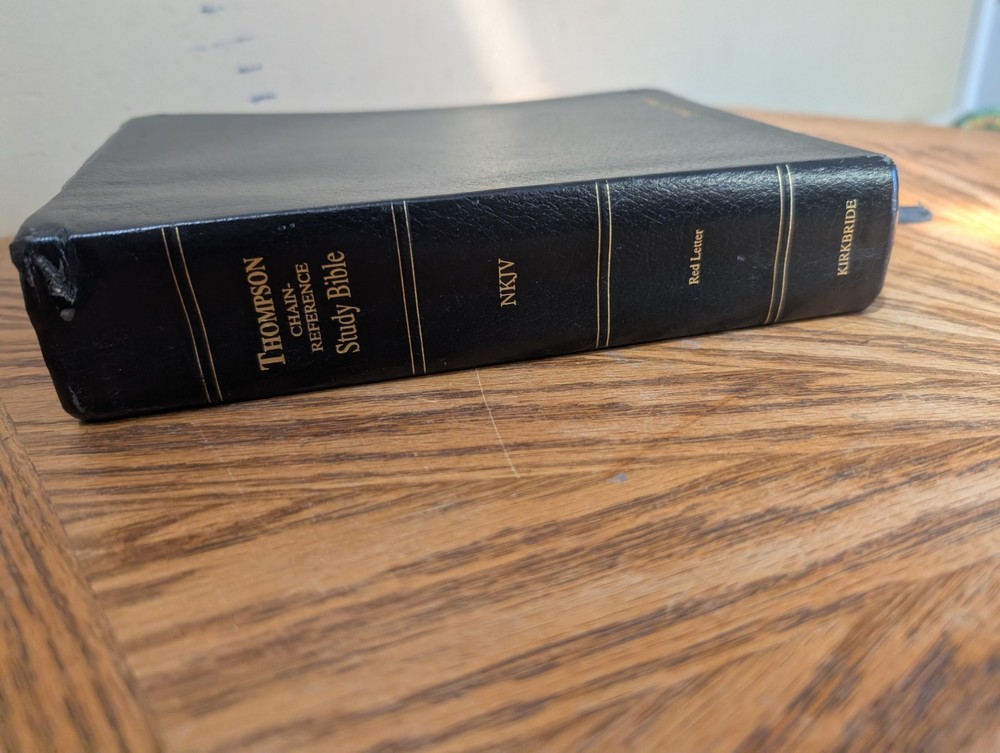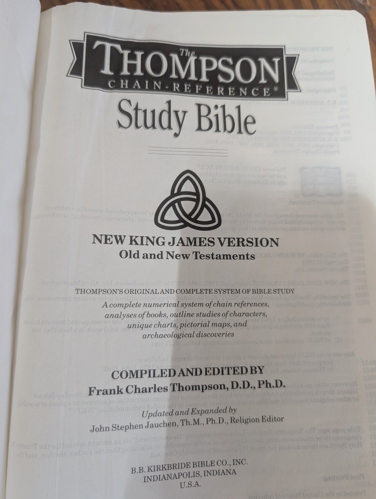 Thompson Chain Reference Study Bible NKJV Kirkbride Leather Red Letter Fair shape, Name on cover, a few highlights noted, Some very minor water swelling on a handful of pages (see photos). No sticky pages, No missing or dirty pages. SHIPS FAST