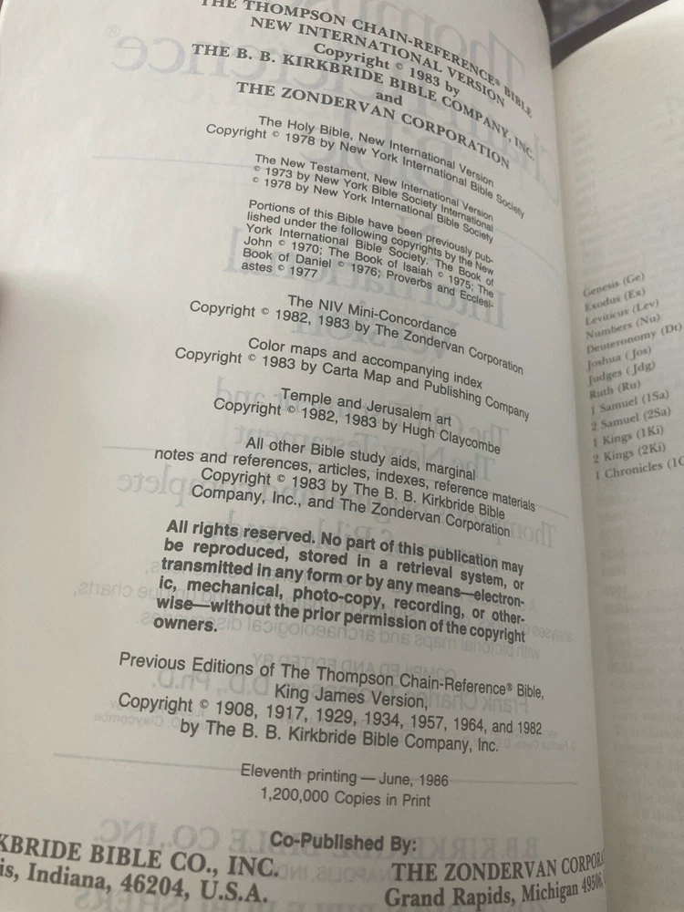 Thompson Chain-Reference Bible-Niv (11th Printing; 1986) Burgundy Bonded Leather...