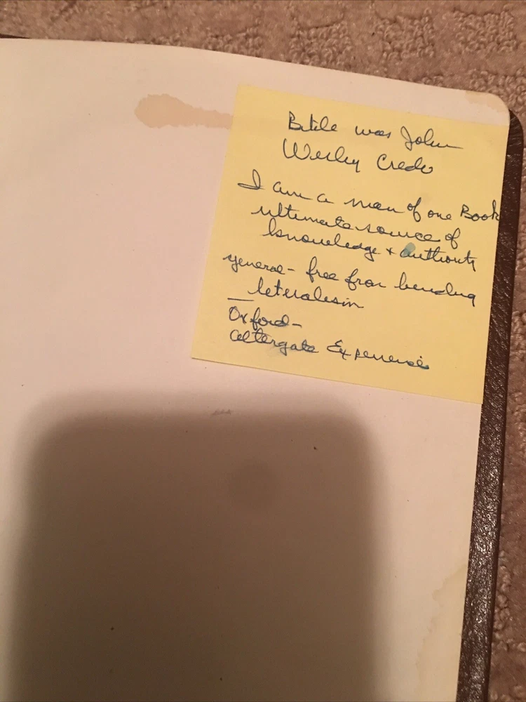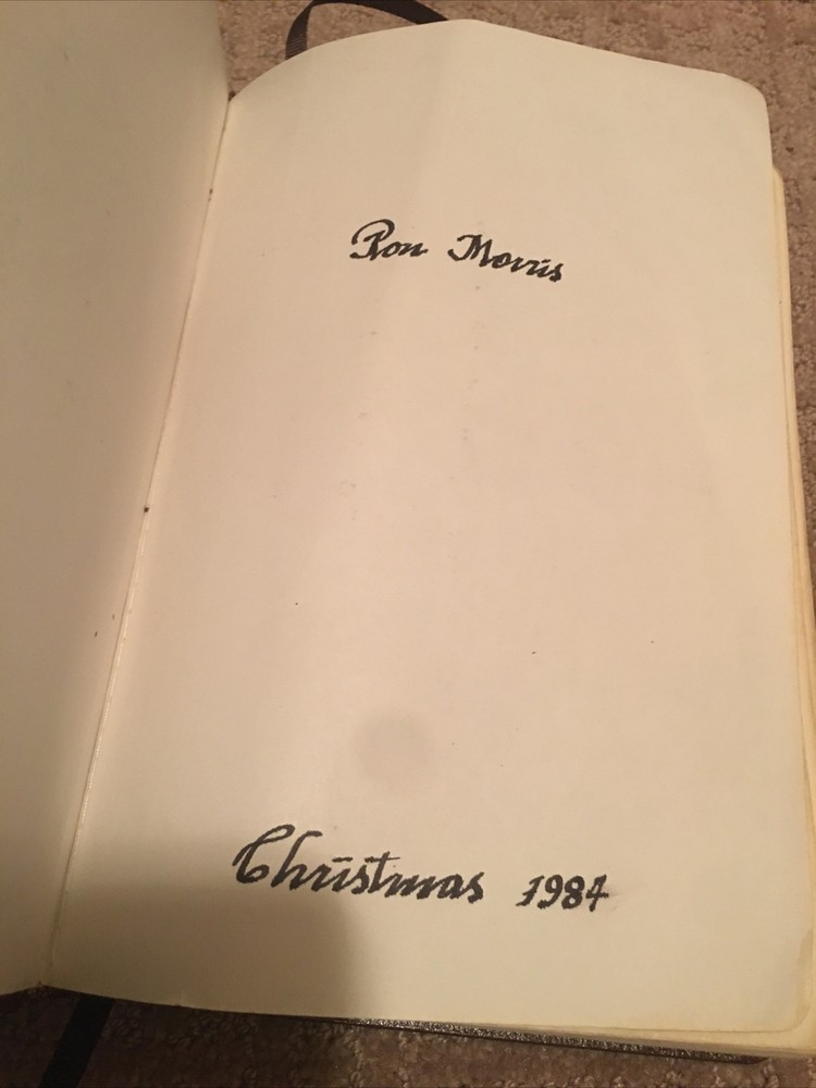 Thompson Chain-Reference NIV Bible Red Letter 1983 Signed Rev. Ron R. Morris. Ron Morris Obituary Reverend Ron Morris 1934-2020 Ron was born on January 7, 1934 and reborn on the same day in 2020 when he left this earth and joined his heavenly family. He was known by many names and nicknames during his lifetime- Dad, Ron, Ronnie, Podz, Rev, Reverend, Rabbi (teacher) and even Vicar. Whatever the name it was his energy, charisma, love of people and servant's heart that were always there in abundance. He was born in Henryetta, Oklahoma but moved to Shawnee, Oklahoma prior to high school. At Shawnee he lettered in three sports. As the Senior quarterback he led his high school football team to the State Championship in their division. Although he was offered football and basketball scholarships to several universities he had already decided on his life's calling- that of a Methodist minister. SMU. A perfect fit! As a varsity basketball player Ron was a member of 3 Southwest Conference Championship teams. In 1956 SMU played in what is now known as the Final Four, losing to Bill Russell's San Francisco team in the semi-finals. Several friends from that team are still friends today. SMU's Perkins Seminary provided Ron with the opportunity to serve on the staff of First Methodist Church in downtown Dallas. In 1961 he was given his first church. At the age of 27 he was sent to Oklahoma City, charged with opening a new church in northwest Oklahoma City. He worked tirelessly calling on every household in the surrounding community and his energy paid great dividends. The church that started in a YMCA became the fastest growing Methodist Church in Oklahoma. Ron was named the Outstanding Young Man in the state of Oklahoma. That church- Chapel Hill- celebrated its 50th anniversary in 2011 and Ron preached the sermon for the celebration. In 1965 he had the opportunity to combine two passions- love of God and the transforming power of sports in the lives of young athletes. He accepted a position with the Fellowship of Christian Athletes at their Kansas City Headquarters. There he initiated junior high huddle groups, ran Summer Camps and served as program director and director of Development. In Kansas City, Ron met and married Sandra James, a marriage that lasted until her death in 2005. In 1986 Ron and Sandy relocated to Houston and he eventually returned to the ministry at St. Luke's United Methodist Church. He assumed the role of teacher for the Good Will Class. Belief and life lessons taught with reverence, a sense of humor and occasionally in costume led that class to be one of the largest Sunday Schools classes in the Methodist Church. Held in the Rotunda it was often SRO with over 250 attendees. His puns were (groan) legendary and the "fax"- later Emails of the week were a humorous start to what was always a deeply personal lesson. Retirement from St. Luke's sent Ron and Sandy on a new adventure when he took the assignment to pastor three small churches in the Shipley-Leeds area in England. Small congregations and aging churches presented a new challenge. With little money available from the members he decided to raise money from his many friends at home by getting pledges to run the London Marathon. And he did just that.... Through the generosity of his friends "back home" he raised enough to replace the aging heating systems, windows and infrastructures in all three churches. He also installed lighting on the exterior of the Craig's Road church. Those lights today are a constant reminder of his love and support. A return to Houston brought another opportunity. He joined the staff at Houston's St. Martin's Episcopal church as an advisor for stewardship.He also began a Sunday School class for Senior adults- the Seekers. That class provided a Sunday school home and a source of friendship to many. He retired from that position in 2013. The onset of Alzheimer's led to the curtailment of his activities but not his wit. While attending Amazing Place, Sheltering Arms and the Gathering he was always the one asked to give the prayer and everyone was amazed that his prayers suited the occasion perfectly. He was preceded in death by his parents, Walter and Dolly Gaye Morris, brother Walter Morris, Jr., his wife Sandra James Morris, and two very close cousins- Gaye Land and Betty Land Gaines. He is survived by his wife Gretchen Johnson-Morris, daughter Karen Elizabeth Morris, four step children: daughters- Kirsten Kenney-husband Bob Dillon; Karen Kenney-husband Mike Rakes; Amy Thompson-husband Mike Thompson; Step-son Derek Johnson-wife Sara and two grandsons- Graham and Connor Johnson He leaves behind a legacy of friends, students and teammates. Ron's family would like to thank the caring staff at Colonial Oaks, the Doctors and nurses at Methodist IMU and the wonderful peace that was provided by Houston Hospice. A celebration of Ron's life will be held on Friday, January 24th at one o'clock in the sanctuary of St. Luke's, the Reverend Linda Christians officiating. A reception will follow in the fellowship hall. In lieu of flowers the family requests donations to be made in Ron's name to Hospitality Apartments- P.O.Box 25213, Houston, Texas, 77265-5213, The Nick Finnegan Counseling Center- St. Luke's Methodist Church or to the charity of your choice. Ever the master of one-liners we will close with one of his favorites! When viewing a long obituary he had a favorite saying and it applies here, "That was quite an undertaking"! "Well done thou good and faithful servant" Welcome Home And the angels sang "Amen"