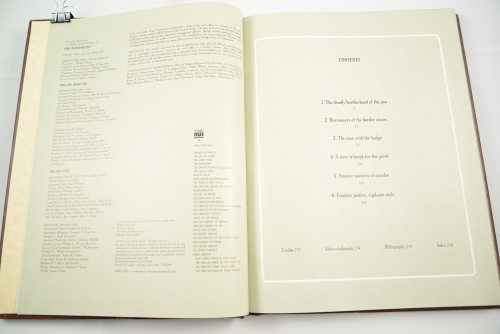 Time Life Books; The Old West- The Gunfighters Faux Leather Hardcover Book 1974 Seventh printing. Revised 1981 Faux leather bound 238 pages Features illustrations, black & white photos. No stray marks, solid binding. Shipping combined for multiple purchases of my listings. Please message me for any questions about my listings. Thank you for viewing.