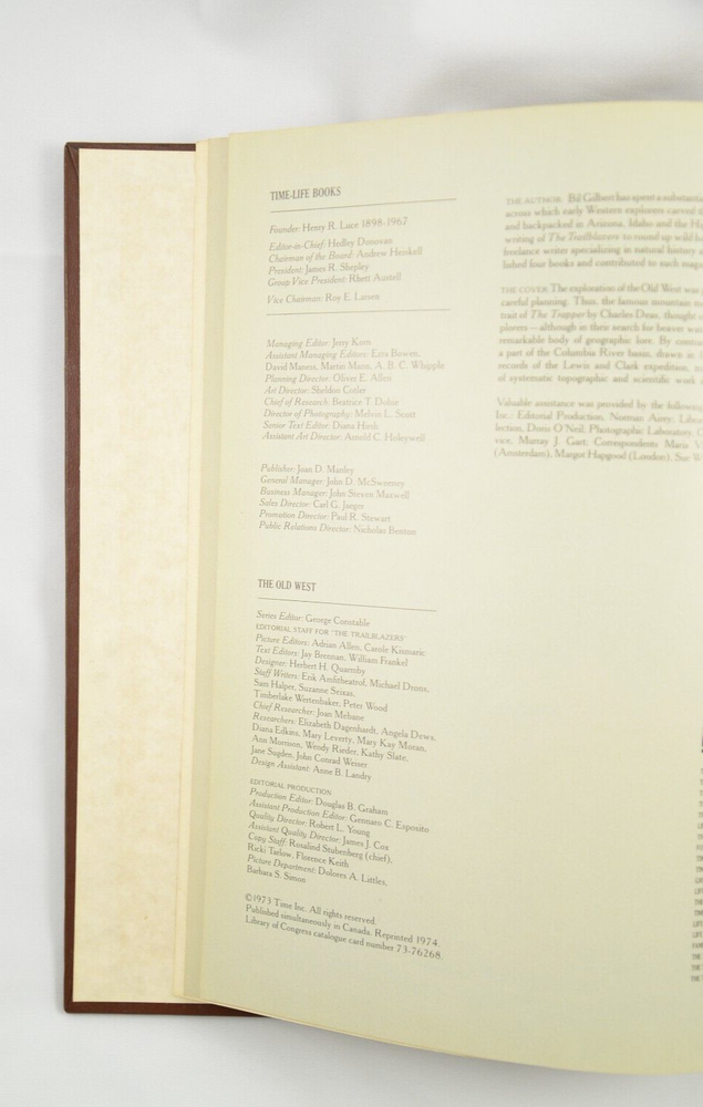 Time Life Books: The Old West- The Trailblazers Faux Leather Hardcover Book 1973 Reprinted 1974 Faux leather bound 236 pages Features illustrations, photos. No stray marks, solid binding. Good condition. Minor cover blemishes. Shipping combined for multiple purchases of my listings. Please message me for any questions about my listings. Thank you for viewing.