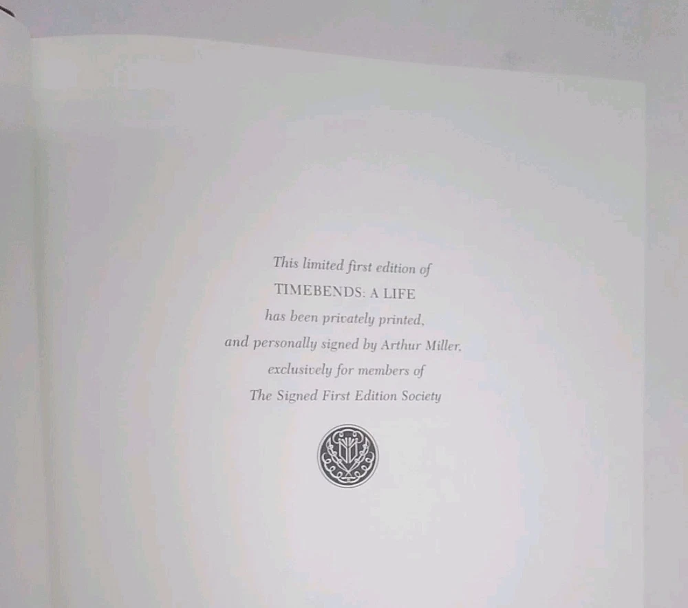 Timebends: A Life, autobiography by Arthur Miller: Signed! 1st Ed., Luxury Leatherbound collector's edition from the Franklin Library, 1987. Red leather with gilt embossing, gilt-edged pages, ribbon bookmark, marbleized endpapers. Very Good+ Condition. Pristine cover, pristine text block. Gorgeous book! See photos for further details.