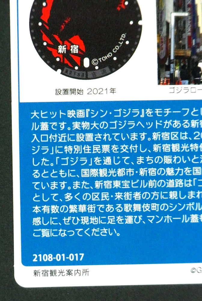 Condition : Never Used This is an official Japanese Manhole Card featuring the iconic Godzilla design from Shinjuku, Tokyo . It is a highly sought-after collectible distributed in limited quantities to promote Japan's unique manhole cover art. Condition:used UnOpen There may be dirt, scratches, or deformation. Please check the photo. The stand is for photography. Not included with the product. Japan Manhole Card Distribution / Local Tourism Event Economy Shipping is not Tracking Number. Shipping Policy We will reinforce the card with thick cardboard to prevent the card from bending. The product is packaged and shipped in a plastic bag to prevent water damage. Products will be shipped from one of the following shipping companies:,CPASS, or Japan Post. Your order will be dispatched to you from Japan within the designated handling time from the date of payment. Items are shipped within 3 to 5 business days of order placement. Shipping is only available to the address registered in eBay. If you want us to send another address, please change your address on eBay and then place an order. Shipping is available from Monday to Friday. Weekends are not available because freight (shipping) companies are closed. Packing state: We will carefully pack your items with the most appropriate protection materials to avoid your items from getting damaged during transport to you. Feedback:You will receive a positive feedback from our store as soon as you successfully complete your order and payment. We would very much appreciate if you could leave us one, too! International Buyers - Please Note: About Importer's Obligation Import duties, taxes, and charges are not included in the item price or shipping cost. These charges are the buyer's responsibility. Please check with your country's customs office to determine what these additional costs will be prior to bidding or buying. We do not mark merchandise values below value or mark items as "gifts "? Japan, US and International government regulations prohibit such behavior. Thank you for your understanding.