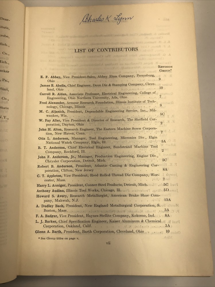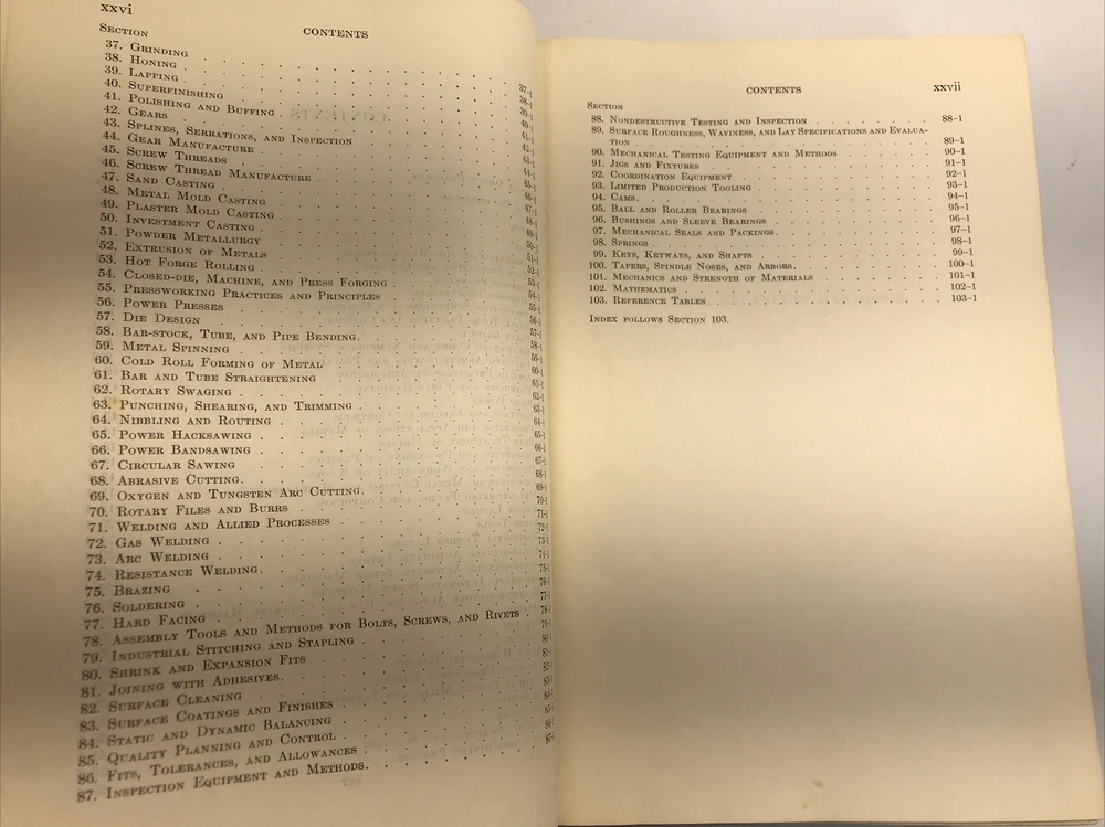 This vintage 1959 Tool Engineers Handbook is a treasure trove of manufacturing knowledge! Packed with practical insights on planning, design, tooling, and operations, it's a must-have for engineers and collectors alike. The book is in good condition with just minor signs of use - a previous owner's name and slight edge staining that add character. The wealth of information from expert contributors makes this 2nd edition McGraw Hill reference truly special. You can almost smell the machine shop oil and coffee when flipping through these well-loved pages!