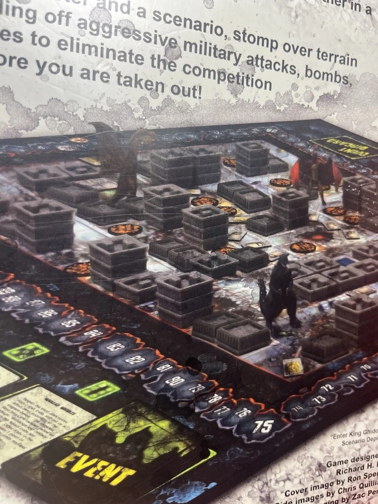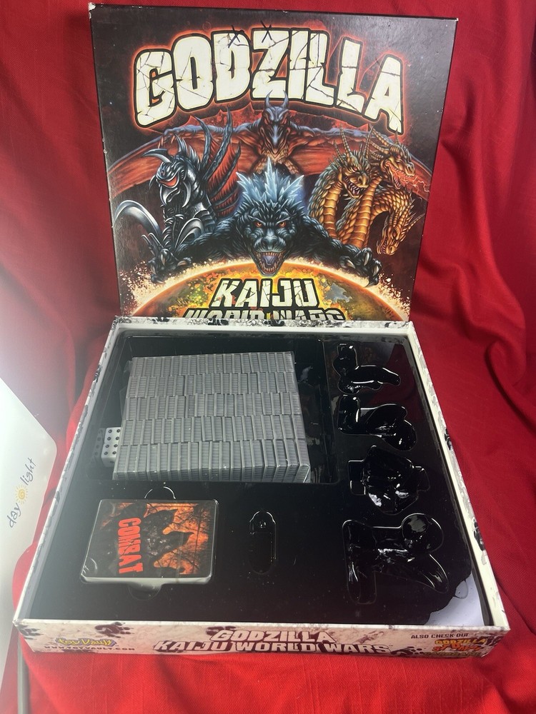 The Toy Vault board game Godzilla - Kaiju World Wars is a strategy and war game designed for 2 players, with a recommended age range of 14+. This boxed game, released in 2011, immerses players in a war-themed world where they must strategize and battle it out with their Kaiju creatures. Perfect for fans of Godzilla and tabletop games, this game offers an engaging and competitive experience for players looking to test their tactical skills in a captivating setting. this game is in beautiful condition. The board is pristine and the pieces are punched. Unfortunately someone removed the figures so it is priced accordingly. You could 3-D print your own figures of Godzilla king Jaron, Gigan, and Rodan and save a grip of cash. Other than the missing figures this game is in beautiful condition.