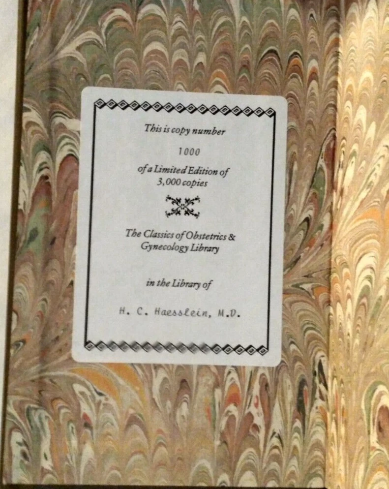 Special edition leather bound limited to 3000 (#1000//3000) from the classics of of obstetrics and gynecology division of gryphon. Some marks to gold gilt page edges ,bookplate on front of inside cover. From a 100% smoke and pet free environment. ====================PLEASE SEE PICTURES OF ACTUAL ITEM YOU WILL RECEIVE==================== PLEASE CONTACT ME WITH ANY QUESTIONS OR CONCERNS YOU MAY HAVE ABOUT ITEM. Always shipped safely and with care. Please see my store for more available items