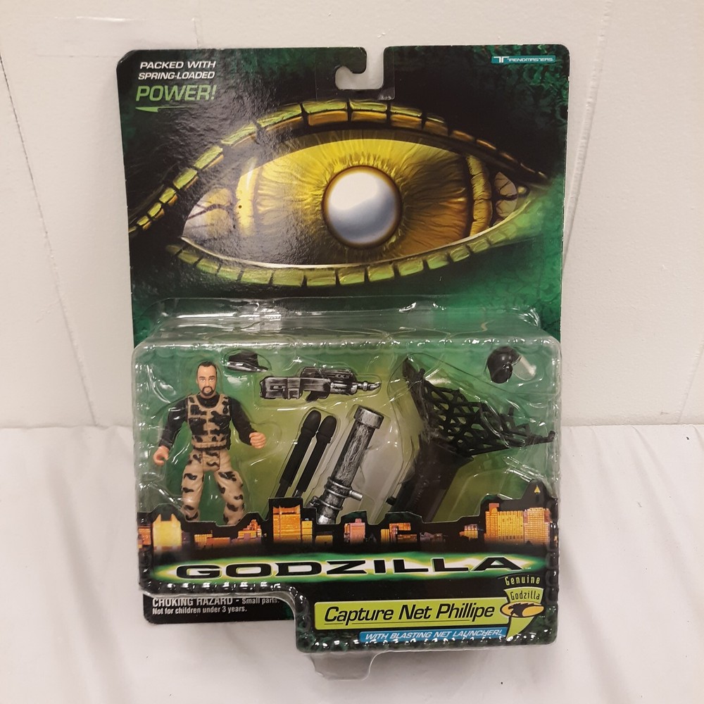 Trendmasters 1998 GODZILLA CAPTURE NET PHILLIPE Action Figure, MOC. Please view photos provided for additional detail and to determine the condition of the item. Please feel free to ask any questions and I will answer them asa