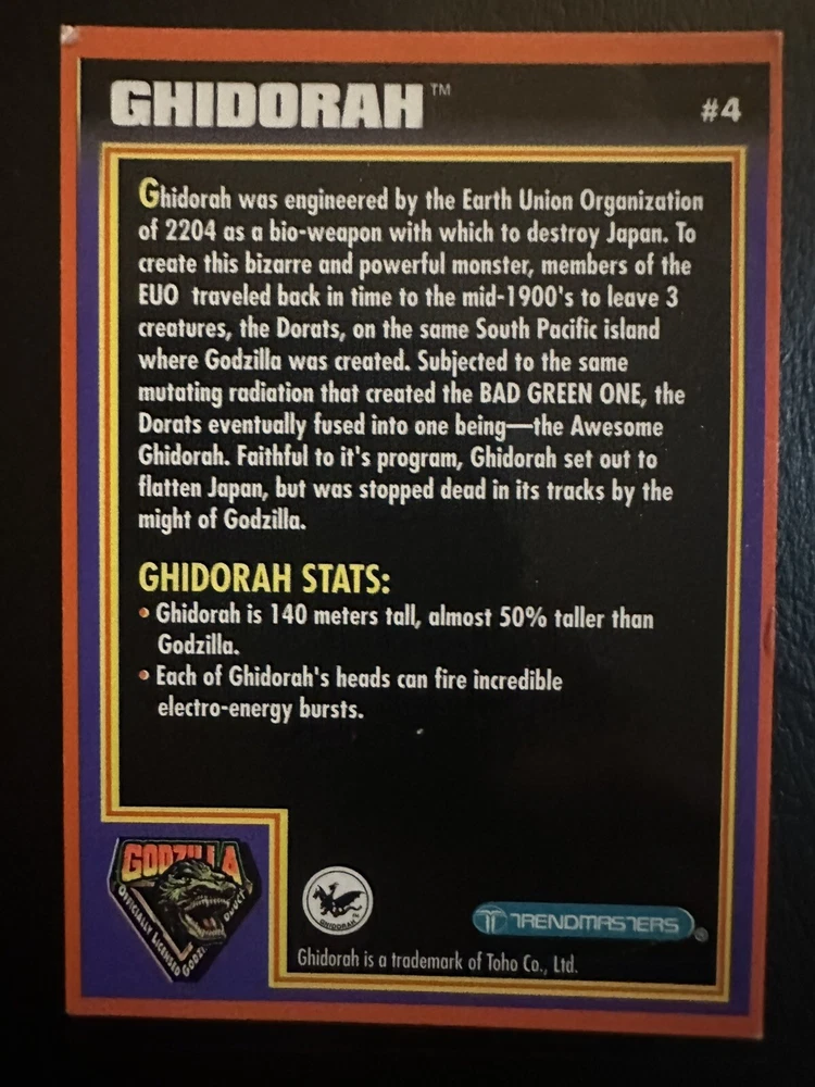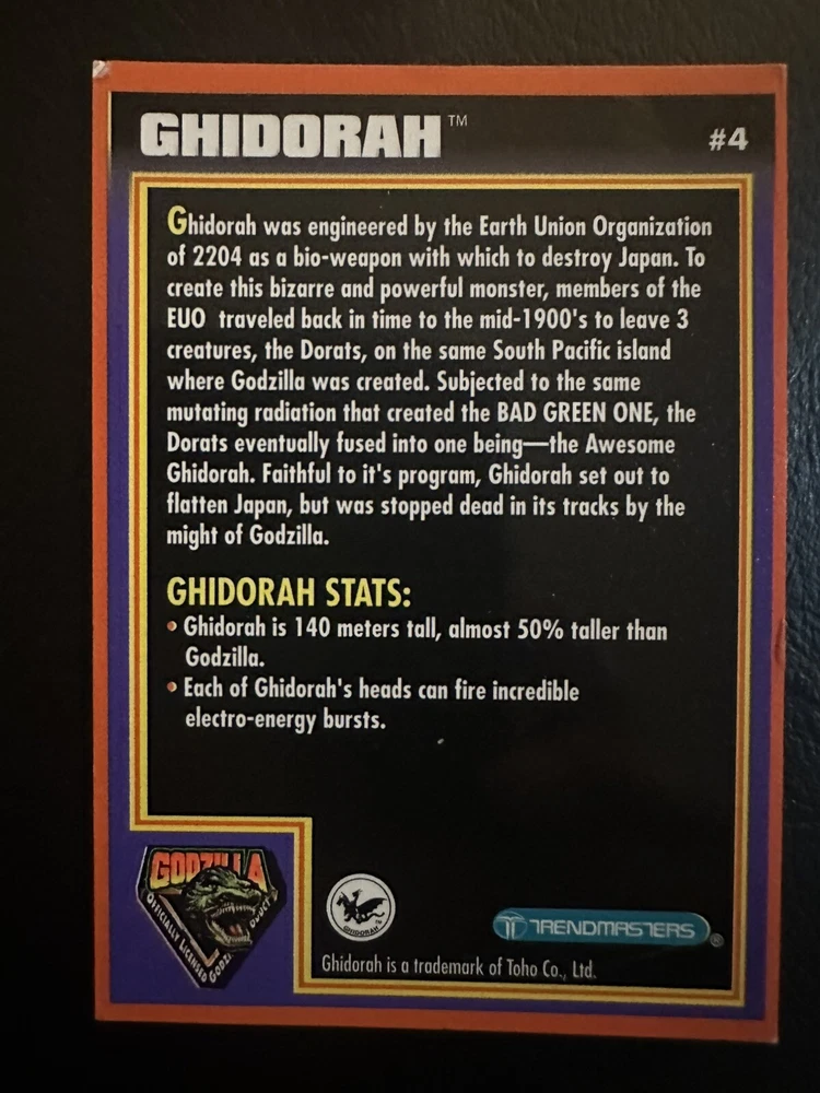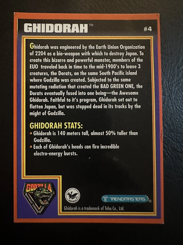 Trendmasters Godzilla King Ghidorah Trading Card 1994 Vintage Rare. Condition is Used. Shipped with USPS Ground Advantage.