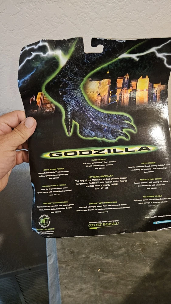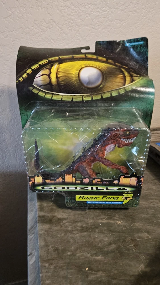 This Trendmasters Godzilla Razor Fang Figure is a must-have for any fan of the iconic monster. The figure is from 1998 and comes in its original packaging. The bent card does not affect the overall value of the item. The brand is known for its quality toys and this one is no exception. The figure is perfect for collectors and fans alike. Get your hands on this rare piece before it's gone.