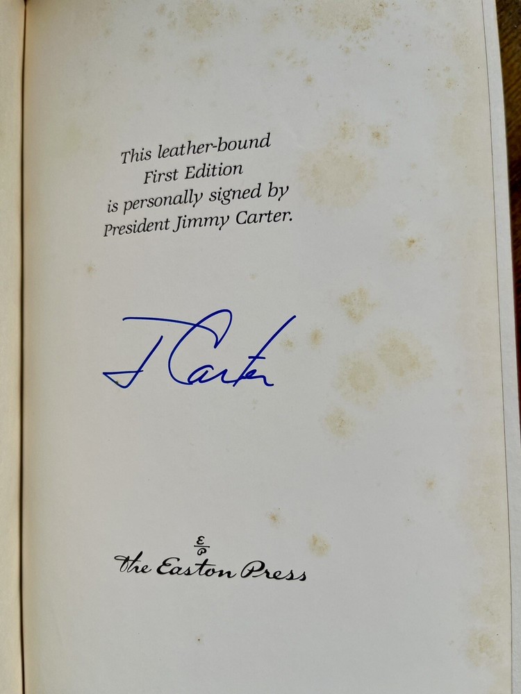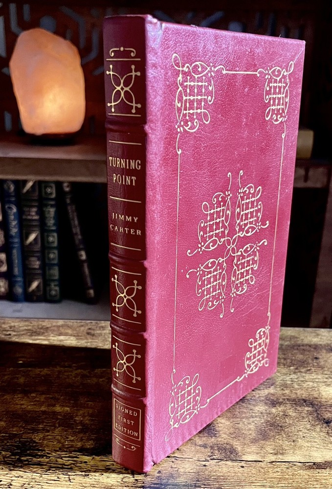 This is a rare opportunity to own a signed first edition of "Turning Point" by President Jimmy Carter. Published by Easton Press in 1992, this luxury collector's edition is a must-have for political enthusiasts and book collectors alike. The book is in its original form and is printed in English. The book's attributes include a leather binding, Norwalk, Connecticut as the place of publication, and the United States as the country of manufacture. It also has special attributes such as being a limited edition and a first edition. The book is not personalized and covers the topic of politics. Purchase this masterpiece today and add it to your collection! Item ships insured for the full purchase price with signature confirmation. Please do not hesitate to reach out with questions, as all items are sold as is, and all sales are final. Thank you for checking out our store and helping us make eBay great again!