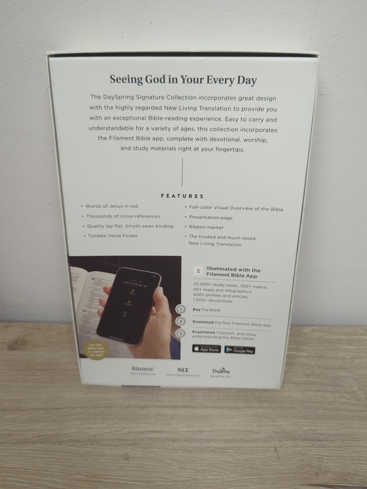 This NLT Thinline Bible is a game-changer! The sleek leather-like cover in sage looks elegant, and the red-letter text makes scripture pop. The Filament app integration adds amazing study tools—perfect for deeper reading. Lightweight yet sturdy, it’s ideal for daily use or travel. Tyndale delivers clarity and quality in this beautiful edition!