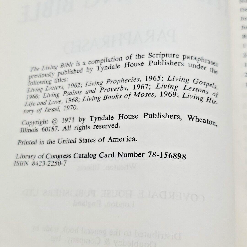 The Living Bible Paraphrased Large Print Edition Tyndale 1971 Thank you for viewing my product, please check out my other cool items in my store!...