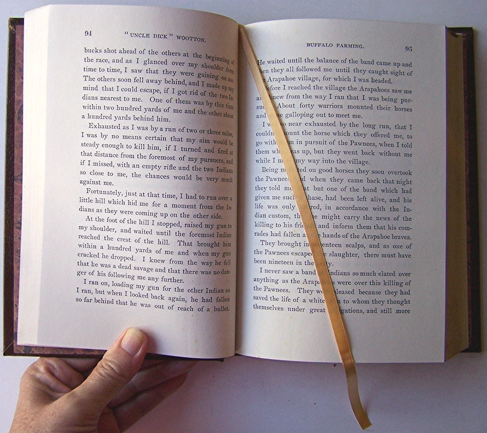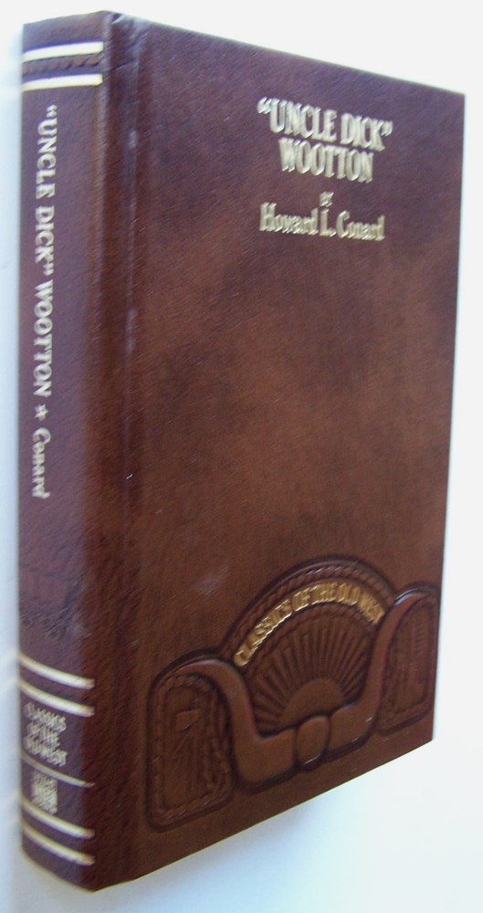 Classics of the Old West "UNCLE DICK" WOOTTON The Pioneer Frontiersman of the Rocky Mountain Region by HOWARD L. CONARD With an introduction by MAJ. JOSEPH KIRKLAND Illustrated ~ ~ ~ ~ ~ ~ ~ ~ Hardcover, Leather Binding; 472 pages; Size Approx. 5 3/4 X 8 1/2. Published by Time-Life Books, Inc; Reprinted 1980 from the 1890 edition. Details : "'Uncle Dick' Wootton was always on the move. Born in 1816 in southside Virginia, he was taken in infancy to southern Kentucky, where his parents raised tobacco. At 17, he joined an uncle in cotton farming in Mississippi. After two years, he headed for Independence, Mo., the great jumping-off point for the West. There is signed on as a wagoner, sure of his qualifications: 'I could use a gun as well as anybody, knew how to handle a team, and while I was never particularly in love with hard work I wasn't afraid of it...I got along first-rate.' Dropping from the wagon train near Fort Dent in southeast Colorado, he took charge of a fur-trading expedition. It was not long before he realized that the profits would go to the man who had put up the money, not the trappers, and he decided to start his own operation. He recruited a crew and led them into the mountains, where they laid out traps and brought in the 'peltry.' He sold the pelts for what, in 1837, seemed a fabulous sum -- $15 a skin. Dick Wootton, venture capitalist, was on his way. In all his business endeavors, aprt of his capital consisted of his knowledge of the country, his instinct for an opportunity and plenty of that hard work, which, despite his disclaimer, he probably loved. He ranched, he raised buffalo, he traded. He became a successful freighter, a stage-coach contractor, an innkeeper and provisioner for westering homesteaders. He built his own toll road and made it pay. His life was filled with adventures: battles with Indians (whom most frontiersmen, including Wootton, found savages), attacks by highwaymen, encounters with grizzlies. He tells about them all in this book, but in the end what counts is not so much his adventures as the advice he gives. In his detailed accounts of how to trade with Indians, how to survive in a blizzard in the Rockies, how to keep wolves from eating your slain buffalo, we learn the margins that gave the insider like Wootton an edge in that earliest of great American enterprises, the winning of the West." The Editors Nicely bound with leather, gilt lettering on the front cover and spine; marbled endpapers; gilt text block; ribbon marker; illustrated with black and white photographs. A fine addition for your bookshelf! Condition : There is very faint foxing on the pages where they ribbon lays between; otherwise the book is in very good condition with a firm binding and clean pages. * * * * * * * * Note: The letter/number at the end of the title line for this listing is just an inventory code for locating the book. ______________________________________ Payment and Shipping Information Payment Options: Paypal Accepted Shipping: Free Domestic Economy Shipping! Please contact me with any questions. Thanks for looking!