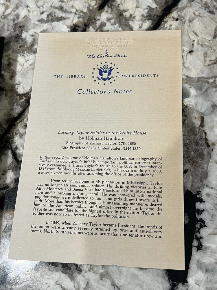 UNREAD ~ Hamilton ZACHARY TAYLOR SOLDIER IN THE WHITE HOUSE Easton Press + Collectors notes. This book is in an excellent, like new condition, view images and comes as shown.