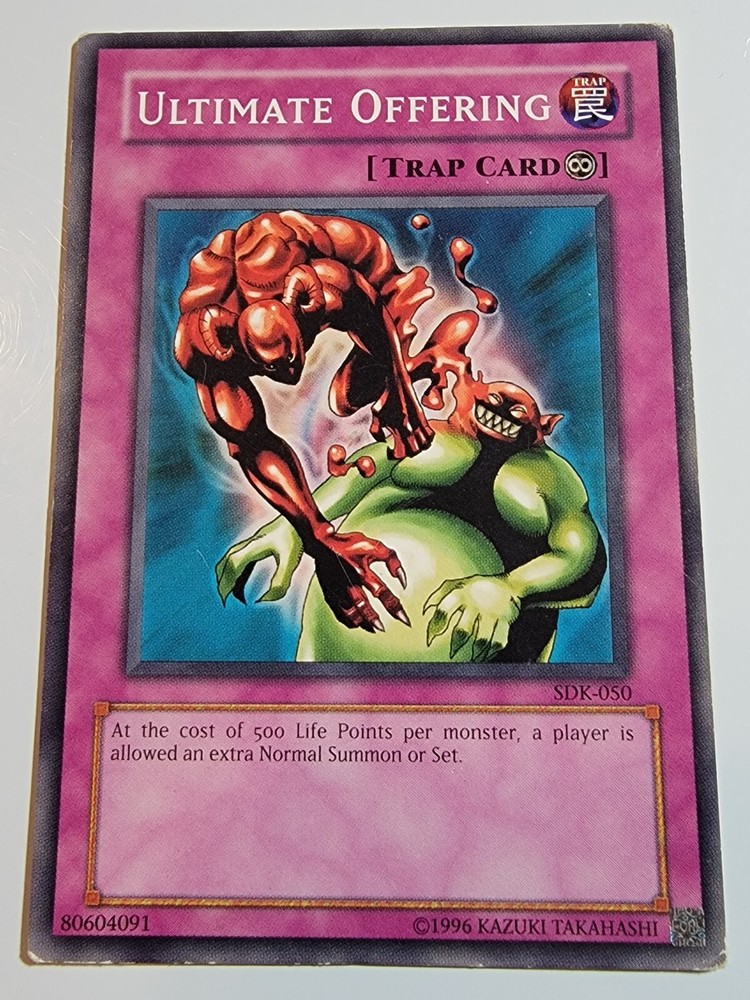 Ultimate Offering SDK-050 Common Unlimited Yugioh. Overall lightly played condition. (Please reference pictures for c osmetic condition). Take advantage of our multi item discount!!! When you buy 2 items you will have the opportunity to select a 3rd item of equal our lesser value for free from our whole inventory. (Must use Ebay's shopping cart feature in order to take advantage of this discount). If you have any inquiries please feel free to message us and we will respond as soon possible, usually within 24 hours. SHIPPING We almost always use USPS as our primary SHIPPING service. We ship within 24 hours of receipt of payment and will always provide tracking, unless otherwise stated in the listing. (We reserve the right to use a different carrier or service). FEEDBACK Your FEEDBACK is important to us as a growing small business. If for any reason you are unhappy with your transaction, please message us and we will do everything in our power to make it right. Returns Returns are accepted within 30 days of confirmation of delivery. If there is anything you are unhappy about with your purchase please message us and we will respond within 24 hours to your concerns. Thank you for supporting our small business. We appreciate your valued business with us and look forward to serving you in the future. Dan & Tonya Dio's Eclectic Treasures