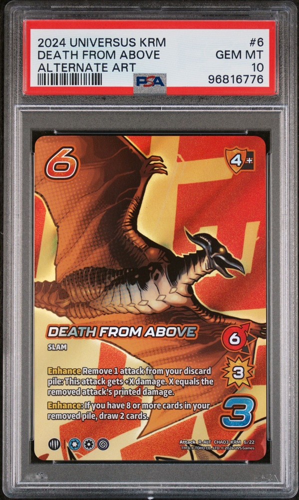 This UniVersus Challenger Series Godzilla Death From Above Alt Art PSA 10 card is a must-have for any collector or fan of the popular game. With its stunning multi-color design and foil finish, this ultra-rare card is sure to impress. Featuring the iconic creatures Rodan and King Ghidorah, this attack card is made from high-quality card stock and is suitable for ages 4 and up. Manufactured by UVS GAMES in the United States, this card is a great addition to any collection and is sure to give you an edge in your next game.