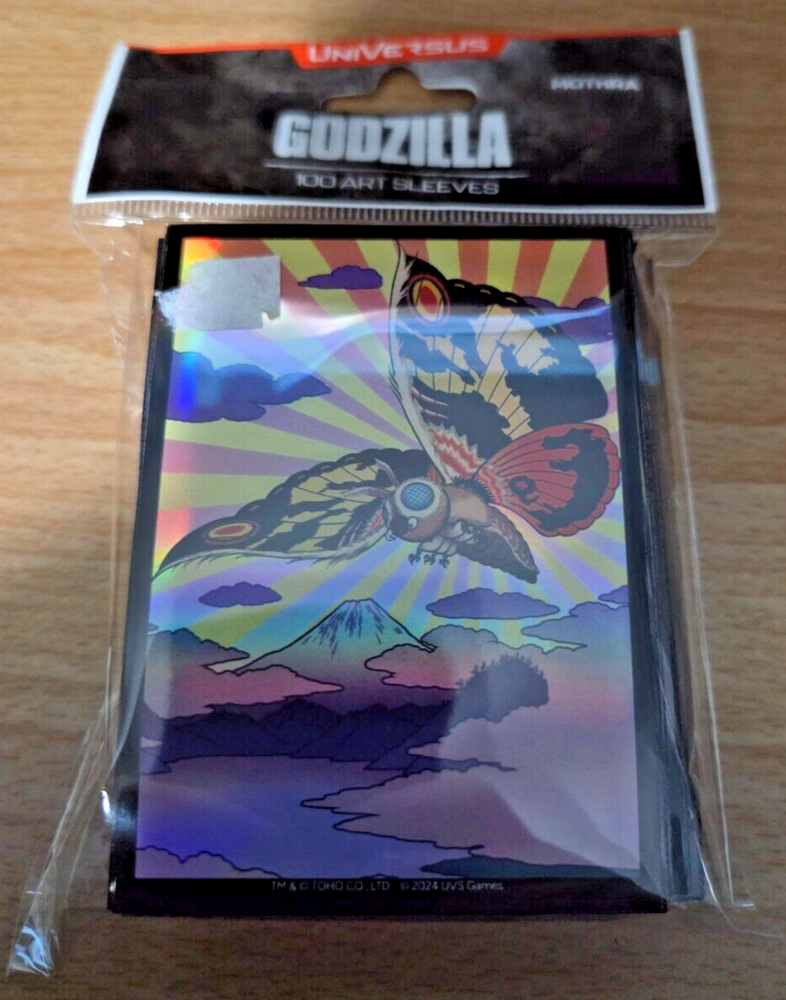 Welcome to Hutch's Hobbies! This sale is for the following CCG item. Please read the description carefully, and ask us any questions before you agree to purchase this item. Thank you very much. Game: Universus Item: Godzilla Mothra card sleeves Condition: Brand new and still sealed. There is some sticker residue on the front of the box Shipping Procedures: Please add 6.00 for tracked shipping in a bubble mailer. We only ship to the United States. Combined Orders: YES- we combine shipping, but if you buy multiple items, please wait for our invoice so that we can combine shipping for you. Offers: We consider all offers on our items. We will respond to all offers in a timely manner. If you have any questions, please don't hesitate to contact us! Thank you for viewing this, and our other items. We sell sports cards, Magic the Gathering, Comic books, board games, and other collectible items, so please keep checking back, as our store inventory is growing and changing on a daily basis. Thanks again!