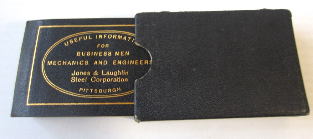 (B7) This vintage book titled "Useful Information For Business Men Mechanics & Engineers" is a must-have for anyone interested in the world of business and engineering. Published by Jones & Laughlin in 1937 in the United States, this book is packed with valuable information that can still be used today. The book is bound in leather and comes with a slipcase, making it a great addition to any collection of antiquarian and collectible books. The language used in the book is English, with no indication of any damage or wear and tear. Its topic is centered around business, making it perfect for anyone who wants to gain some insights into the world of business. Whether you're a collector or a business enthusiast, this book is a great find. This tiny book and slip case are in very good condition. There is a name & address written on the inside cover page. Please view all photos for visual condition. Please, message with any questions, before bidding. Thank You and Good luck! Check out my other items! Be sure to add me to your favorites list! We accept Pay Pal for all purchases. Upon receiving payment, item(s) usually ship within three (3) business days (M-F). If you need your purchase shipped faster, please message us and we will be happy to rush your purchase. Payment within three (3) days of winning the auction is appreciated! Every effort is made to describe items fairly and correctly. I will be more than happy to answer any questions or send additional photos, by email during the auction. Please look at the pictures and ask questions before bidding. Thank you.