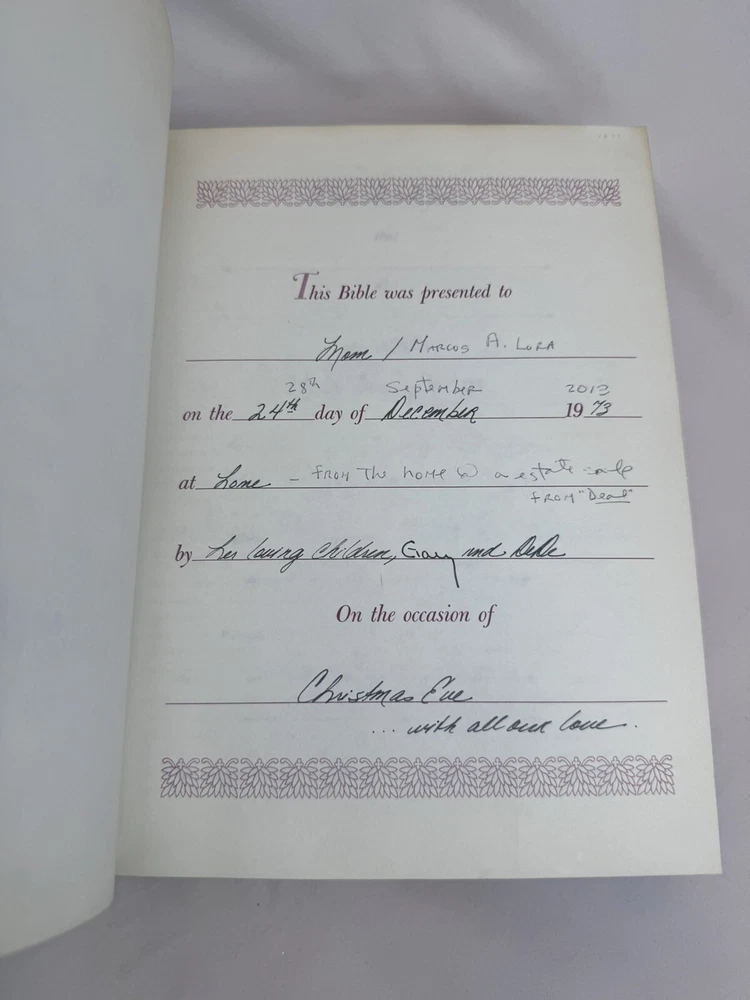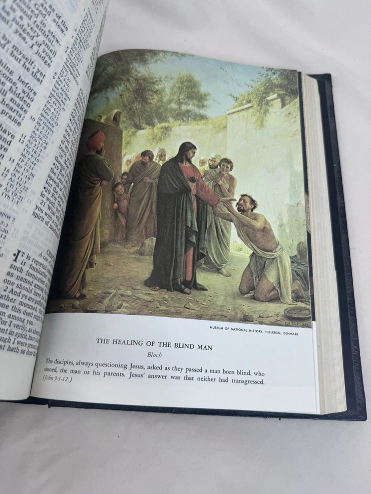 This vintage 1970 Holman Holy Bible is a treasured possession for anyone interested in religious and spiritual matters. With its English language, wide margin, and center column references, this leather-bound book is perfect for young adults and up. The Bible features beautifully illustrations that make it special, and it comes with lots of study materials that provide additional insights into the text. Whether you're a scholar or simply looking for a deeper understanding of the Bible, this Holman Holy Bible is an excellent choice. It was published in the United States in 1970 and has since become a beloved item for collectors and believers alike. So why wait? Get your hands on this amazing piece of history today! ⭐️Only the first page has been written on, otherwise in great condition for its age as shown.