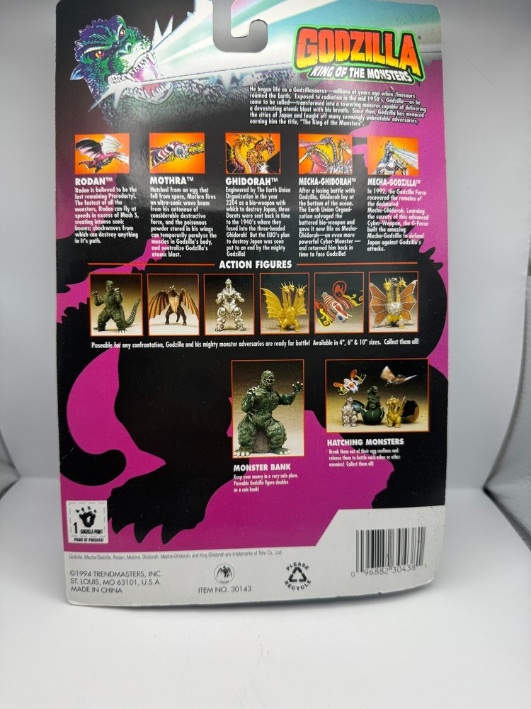 VINTAGE 1994 TRENDMASTERS USA GODZILLA ACTION FIGURE BENDALBLE FIGURE W/ TRADING CARD KING OF THE MONSTERS TOTTO CO. LTD ITEM IS IN NEW CONDITION PACKAGE IN GOOD CONDITION ( PLEASE SEE PICTURES ) THANKS FOR SHOPPING IN OUR EBAY STORE