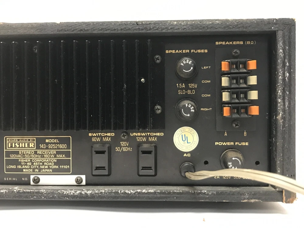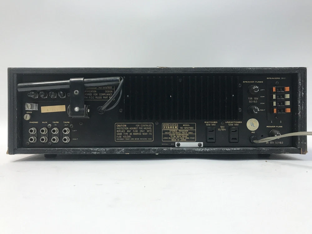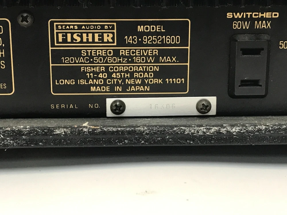 VINTAGE FISHER 143-92521600 AM-FM STEREO RECEIVER - FULLY TESTED & SOUNDS GREAT! VINTAGE FISHER 143-92521600 AM-FM STEREO RECEIVER Great performance and that smooth,warm Fisher sound you remember!. Three inputs with phono preamp and ground for connection to any turntable. 2 sets of speaker outputs and headphone jack. Estate find in great physical condition. Fully tested and works great. MAKE AN OFFER - DON'T MISS THIS ONE! Flat rate shipping to the lower 48 states. AK, HI and PR please request a shipping quote prior to purchase. We accept Paypal. Please make payments within 5 days of auction close. All items will ship within 1-2 business days of receipt of payment. For any special shipping instructions, please send an email through eBay. inkfrog terapeak