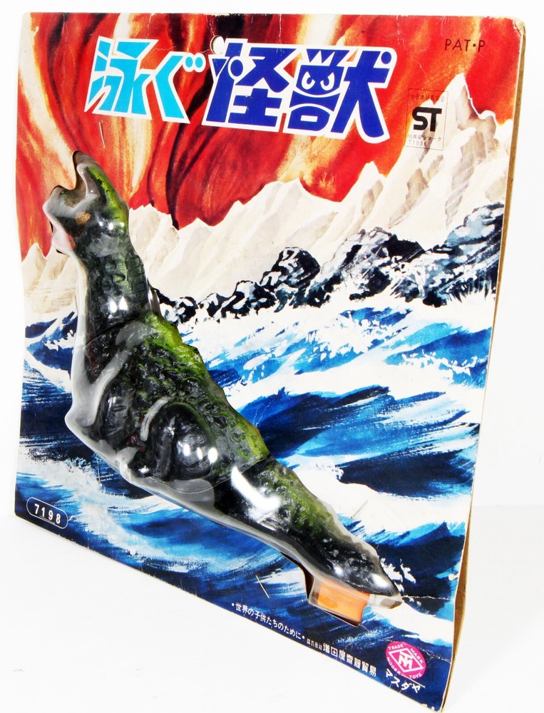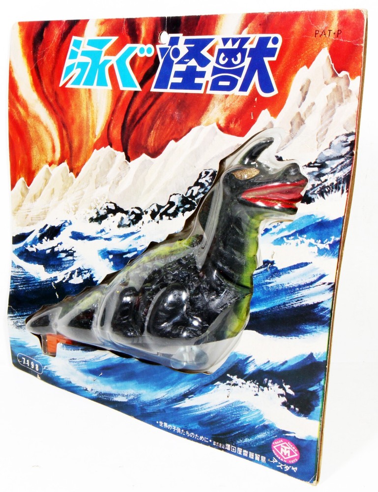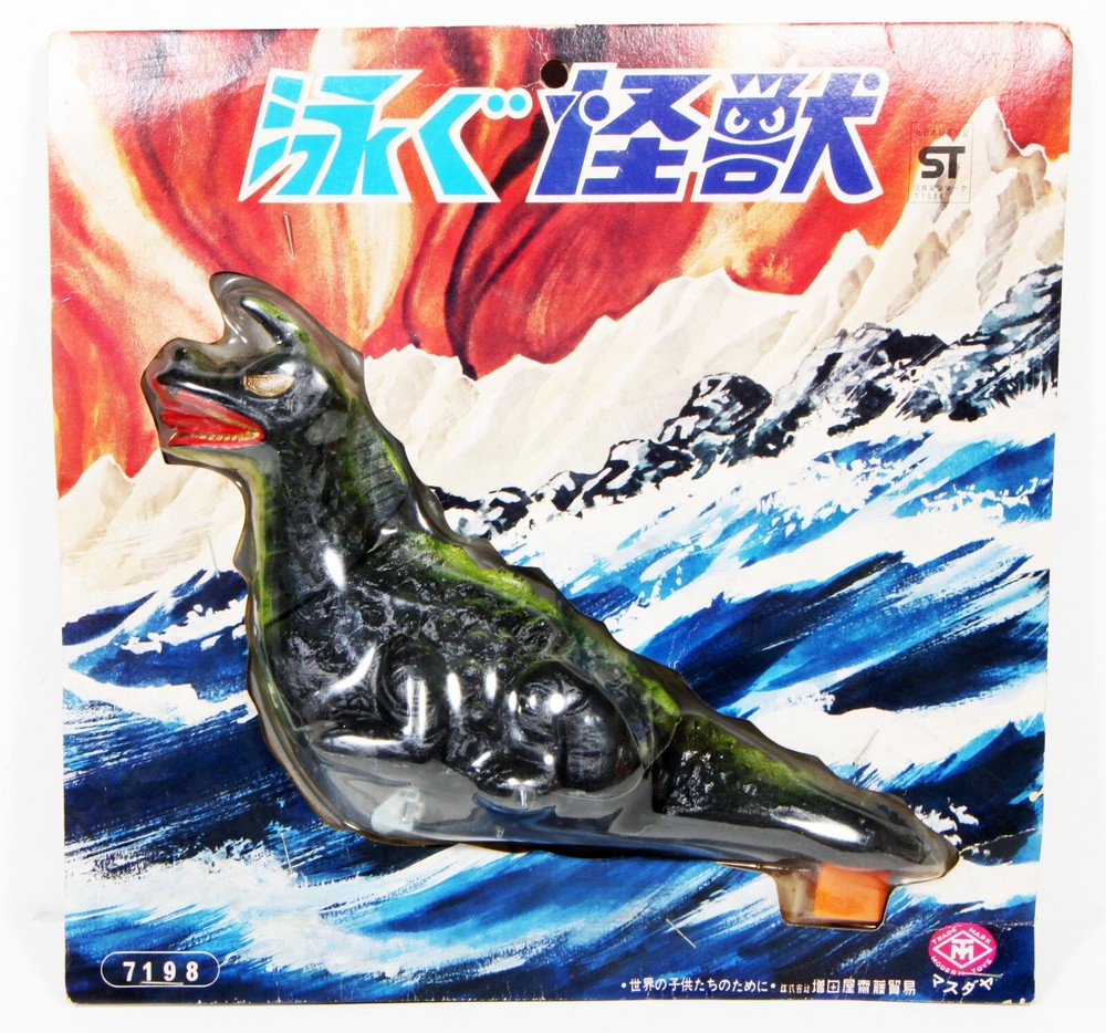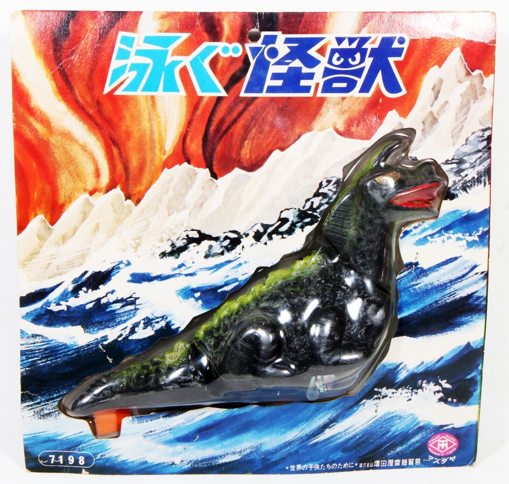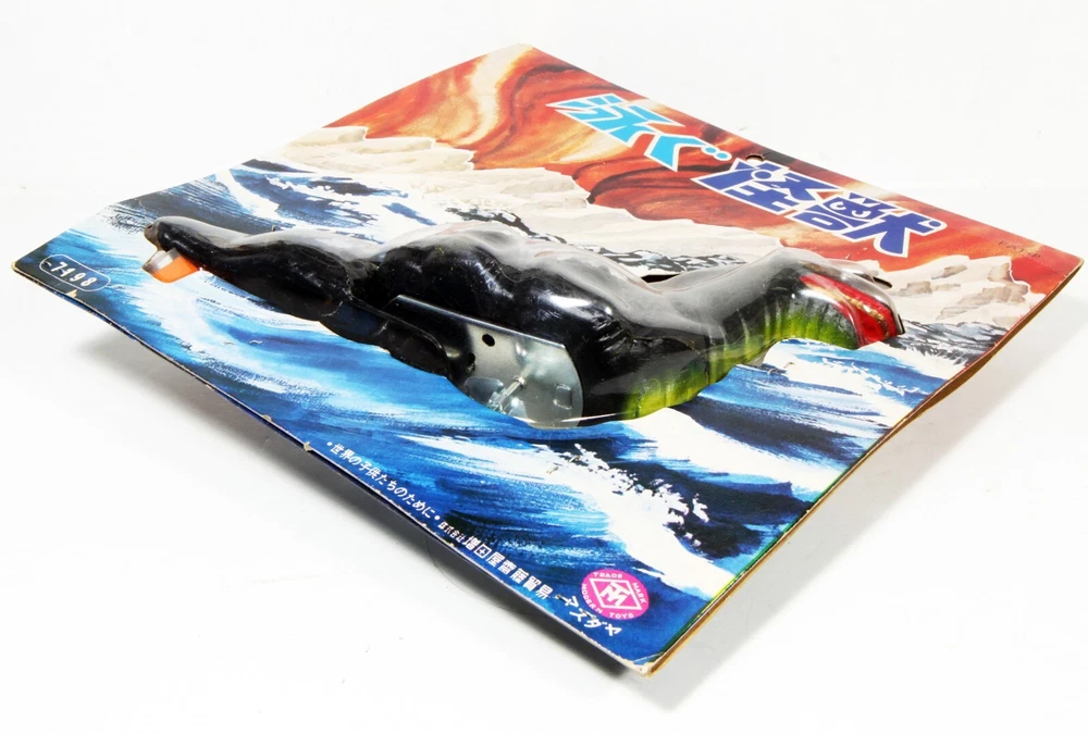 RARE VINTAGE MODERN TOYS WIND-UP FLOATING OCEAN KAIJU, ETERNAL MONSTER, HOGU BEAST , 9.5" long made in Japan, new old stock, mint in unopened card. Neck and tail is jointed, assume it moves when wound up, package is unopened so it's untested. Card has light edge and corner wear, light surface creases at lower right corner by tail, no holes or tears. This auction is open to Japan bidders. These countries are restricted for all carriers shipping out of the U.S. CU (Cuba) IR (Iran) KP (North Korea) SL (Sierra Leone) Palestinian Territories South Sudan Myanmar Crimea Ukraine CI (Cote d’Ivoire) CD (Democratic Republic) LR (Liberia) LB (Lebanon) SY (Sudan) BY (Belarus) IQ (Iraq) ZW (Zimbabwe) SY (Syria) RUSSIA Please review all images for actual condition of Kaiju and card.