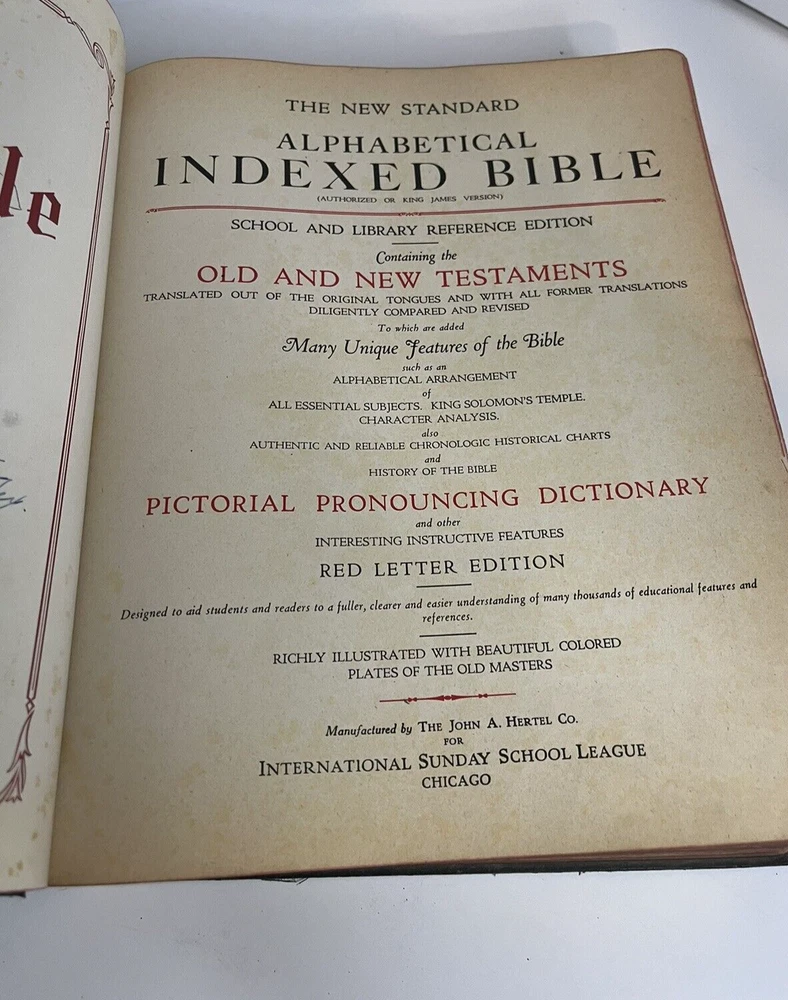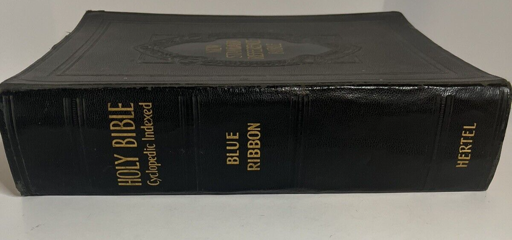 1936 Holy Bible, Cyclopedic Indexed, Blue Ribbon. Hertzel printed in the USA. HEAVY, weights 7 1/2 pounds! Good used condition. See photos.
