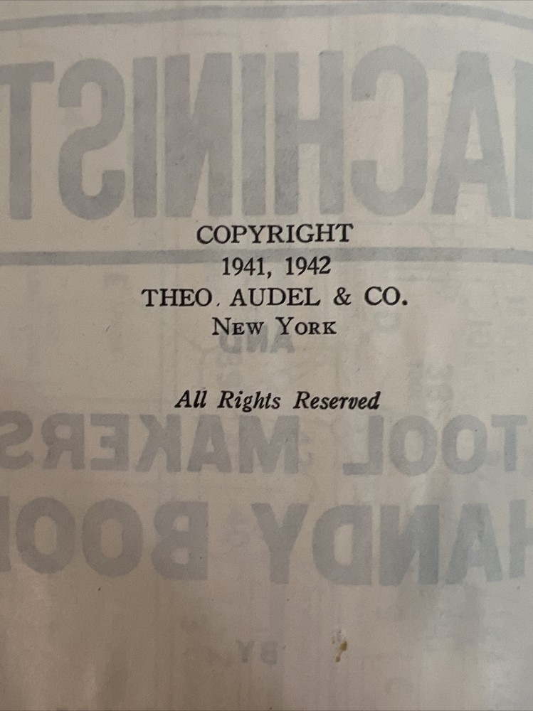 VTG 1941 1942 Audels Machinists And Tool Makers Handy Book By Frank D Graham.