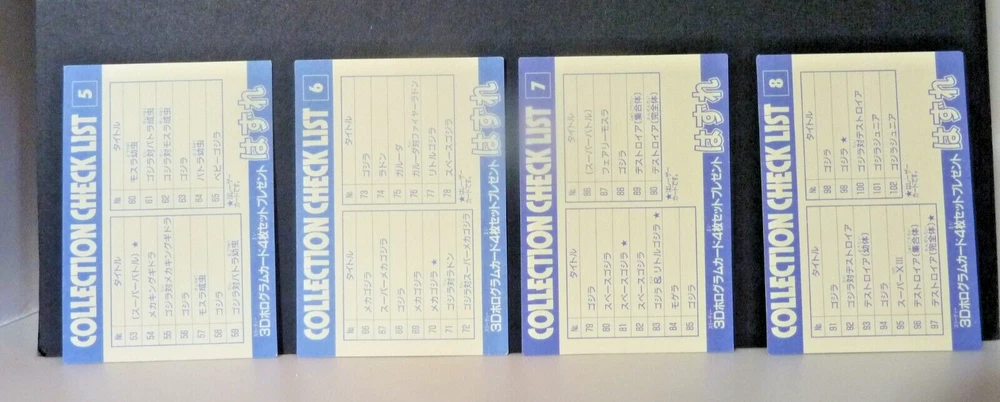 VTG Godzilla Trading Card 1995 Collection Set of 4, Japan Cards 5 6 7 & 8. You get the four cards shown in photos. Card # 5 6 7 and 8 with checklist on backside. Please ask questions before purchasing...