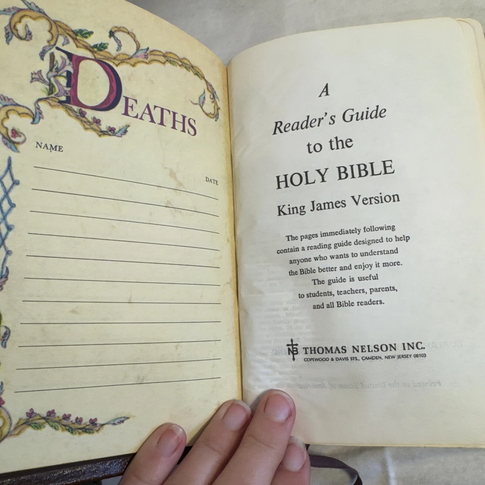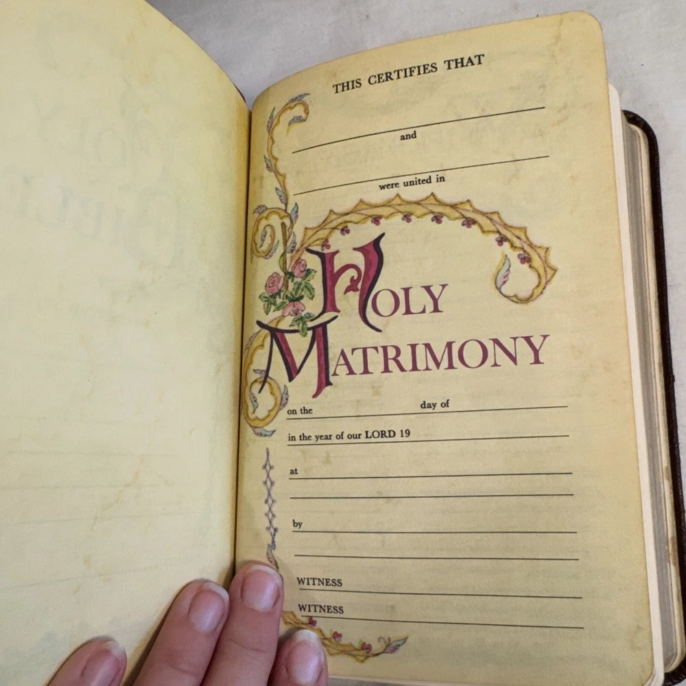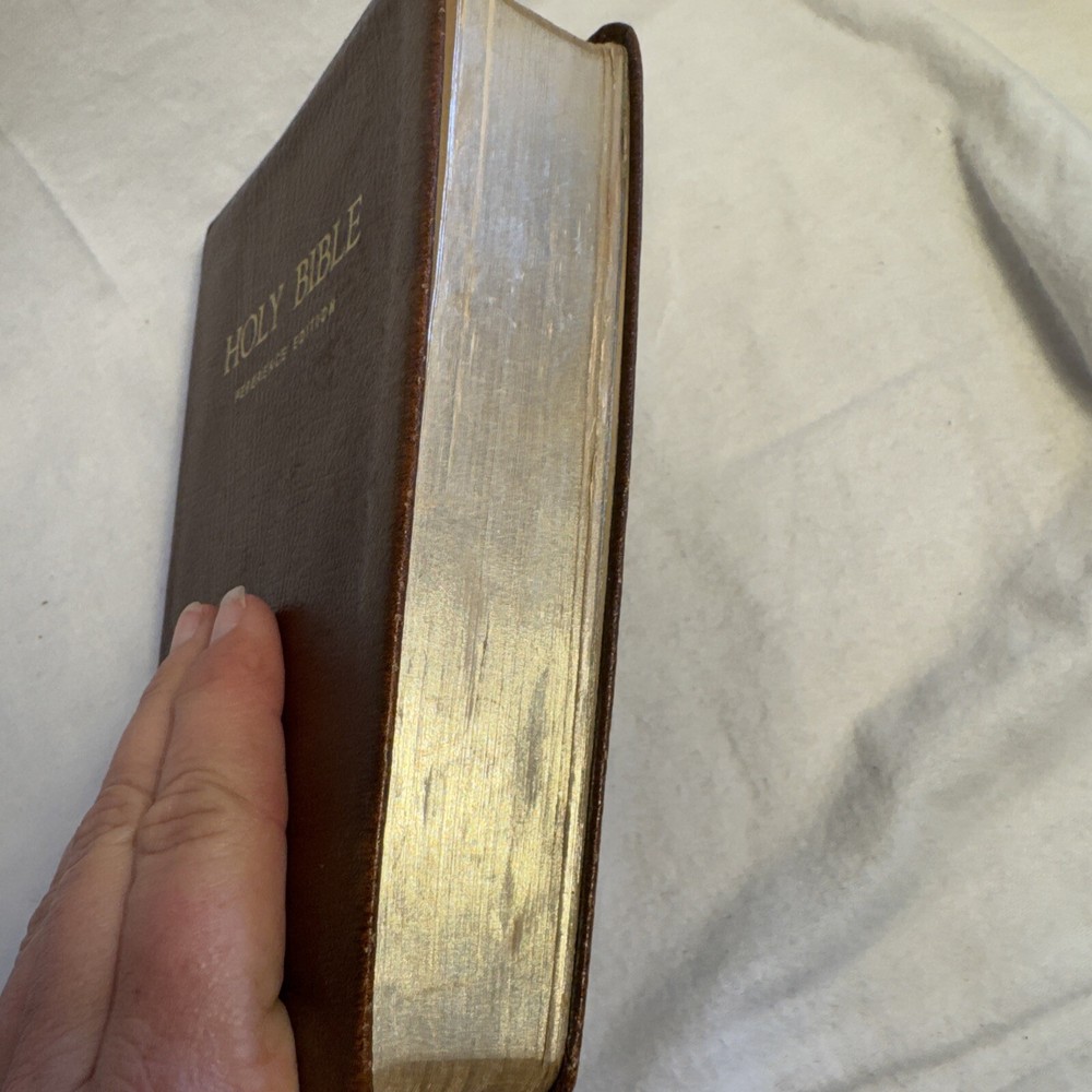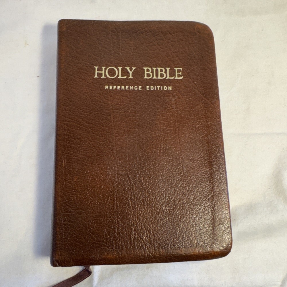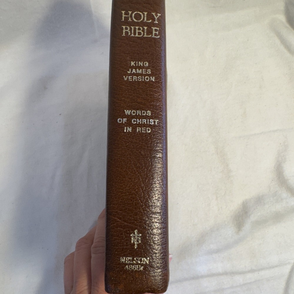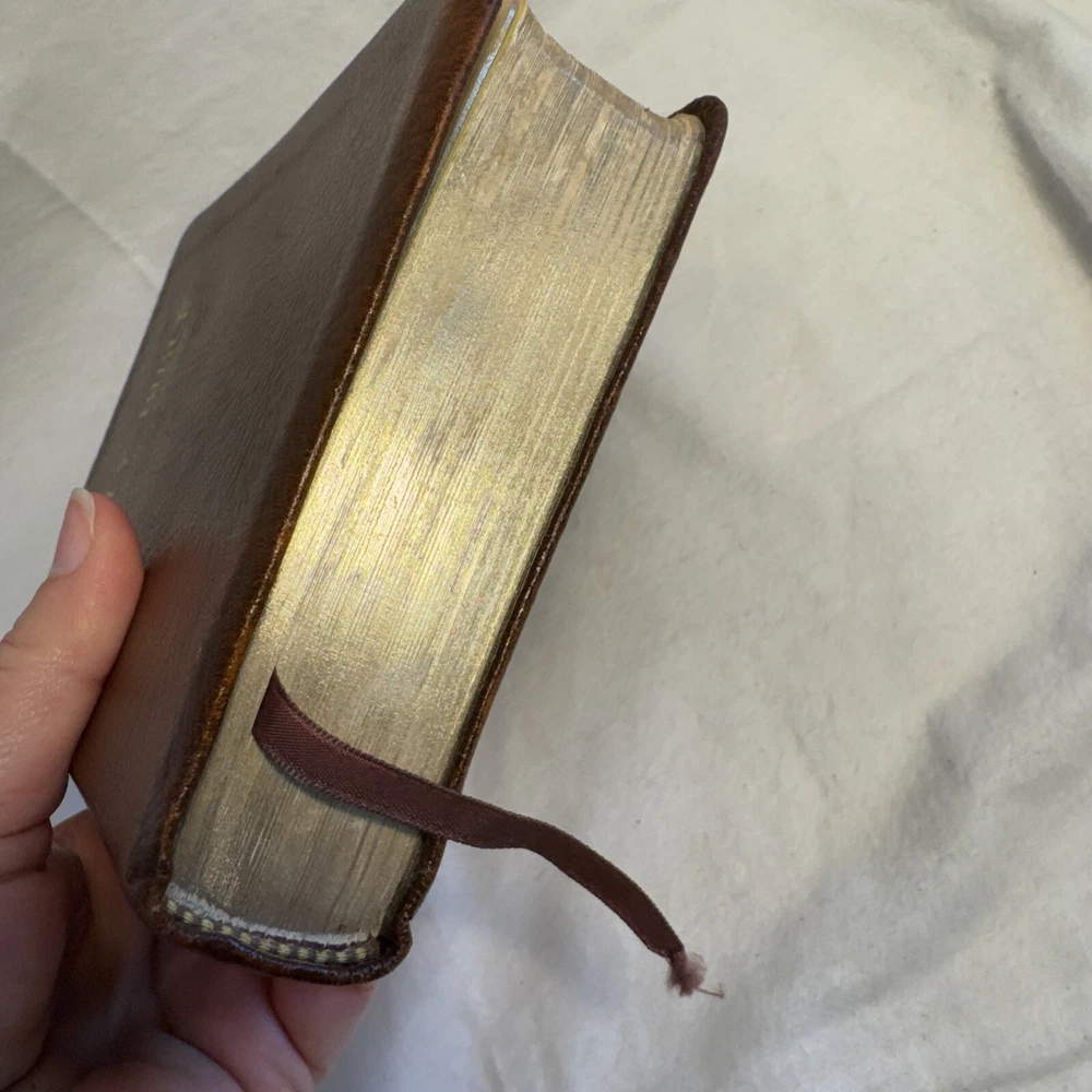Brown, genuine leather in good condition. Measures about 5 x 7.5”. Comes as pictured.
