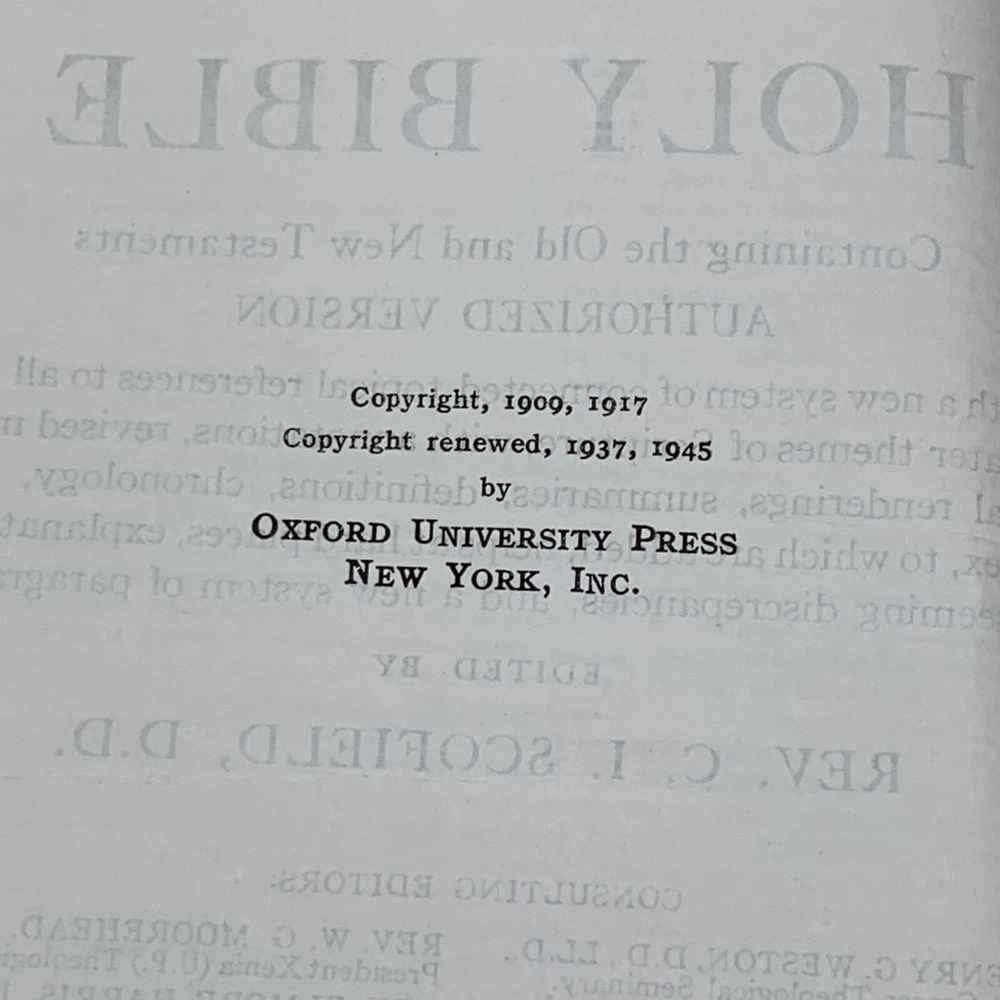 VTG Holy Bible Scofield Reference Edition Leather 1945 Concordance Oxford Press. Book shows heavy wear, please inspect pictures closely....