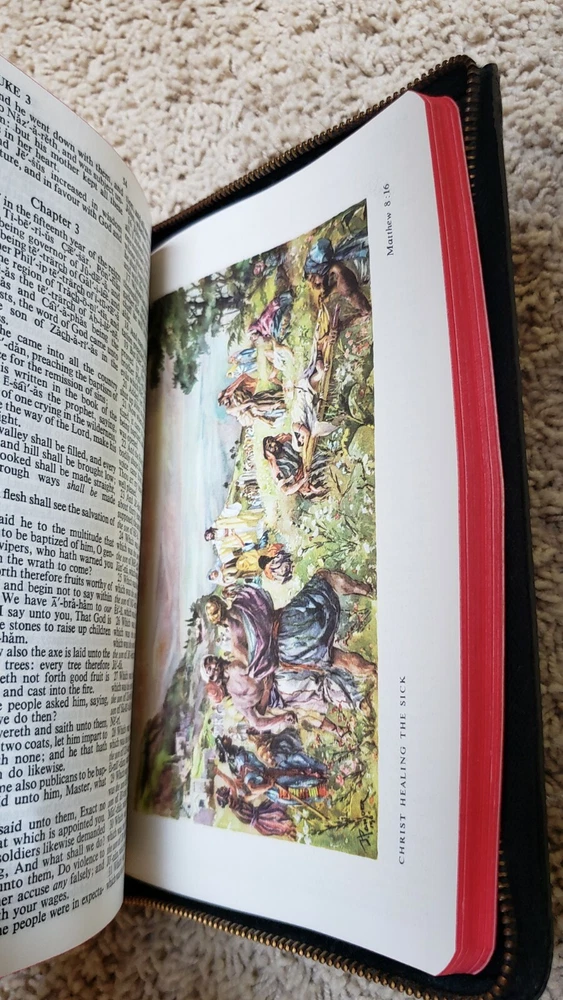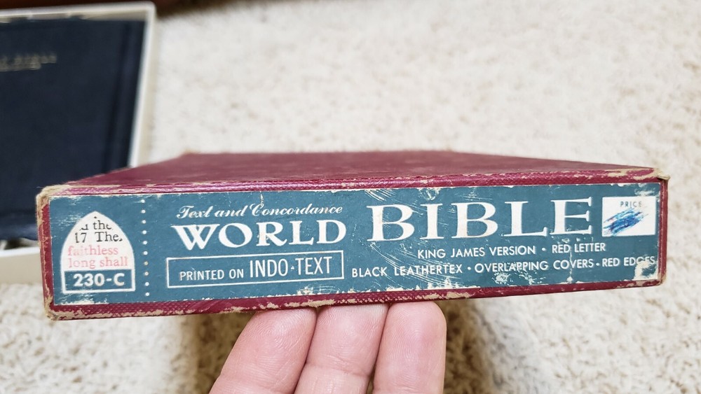 VTG KJV RED LETTER REFERENCE BIBLE WORLD PUBLISHING ZIPPER LEATHER W/ORIG BOX Condition: box has some wear, bible is in great condition, minor marks on the back cover, writing on the presented page, see photos. Thanks for looking!