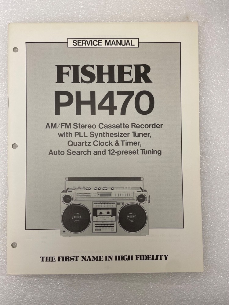 Original OEM service manual, includes, part numbers, schematics, diagrams, charts ect.. . MODEL - VTG Original Fisher PH470 AM/FM Stereo Cassette Recorder with PLL Synth Tuner, Quartz Clock & 12 pre-set Tuning Service Manual Repair Condition :This is an ORIGINAL manual, not a photocopy, reprint or digital version. They may show some wear since most of these are vintage. Some have writing and notes written on the inside and outside of the manuals, mostly useful info. Some manuals have creases and edge wear due to storage. I'm currently in the process of listing an entire electronics repair shops, collection of vintage service manuals. Please click on my eBay store as I will be listing these manuals over the next several months or years!!!!! Thanks for your time and feel free to ask questions if needed. Please see all pictures for detailed description. We use the Ebay Global Shipping program for all International sales, Ebay sets the cost of global shipping, International shipping cannot be combineIf free or flat rate shipping is offered it is to the continental U.S only. All others will be calculated by zip code.We will ship to PO BOXES, APO, FPO, DPO, Puerto Rico, US Virgin Islands but buyer must contact us first as the item will need to go USPS and will more then likely occur an extra charge. Purchase limited to size and weight the USPS allows. Free Pick up is an option but payment must be made in cash upon pick up. Once payment is made we cannot cancel the order . We ship only FED EX, UPS or USPS priority Some Items may require a signature at delivery. All used items are sold AS-IS As described. We do our very best to describe the item listed. 3-98