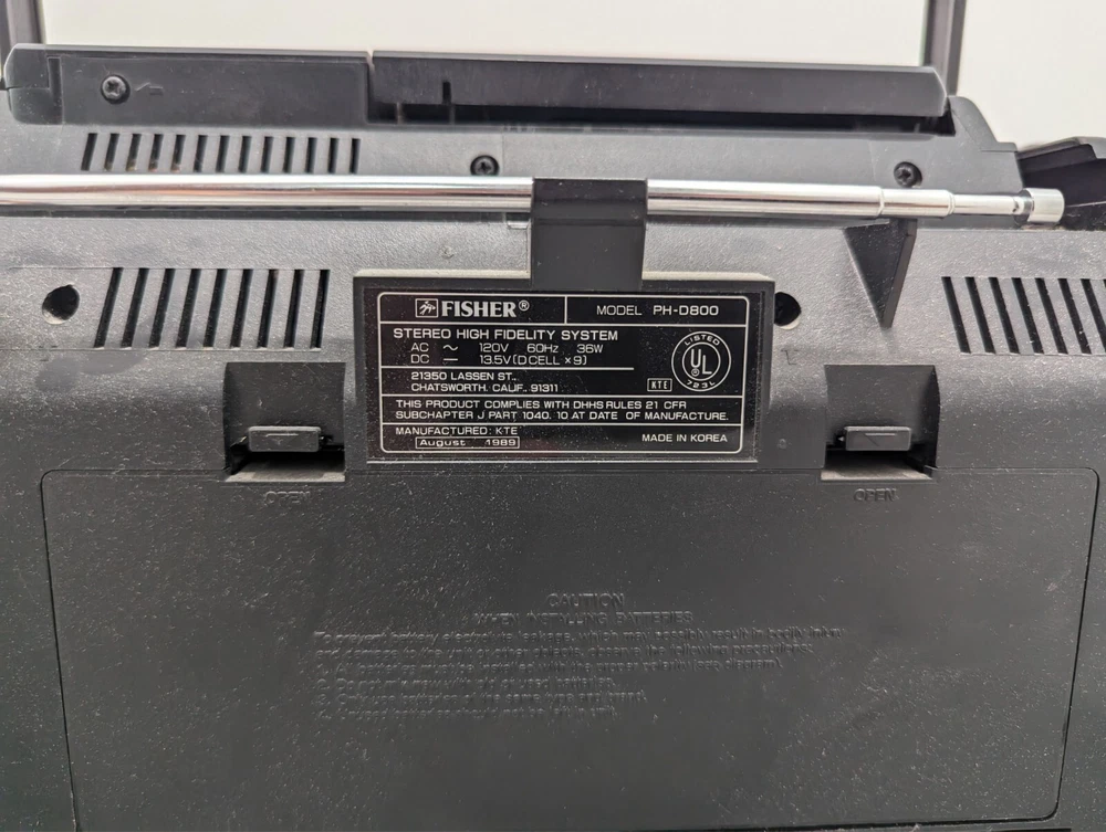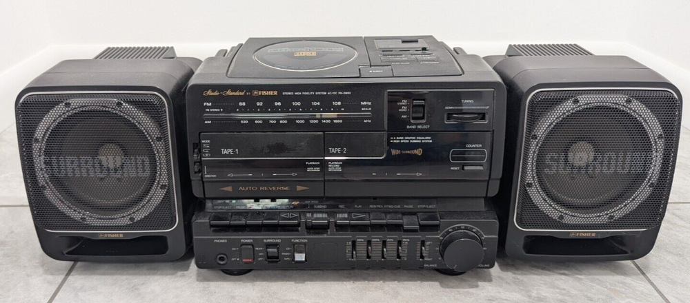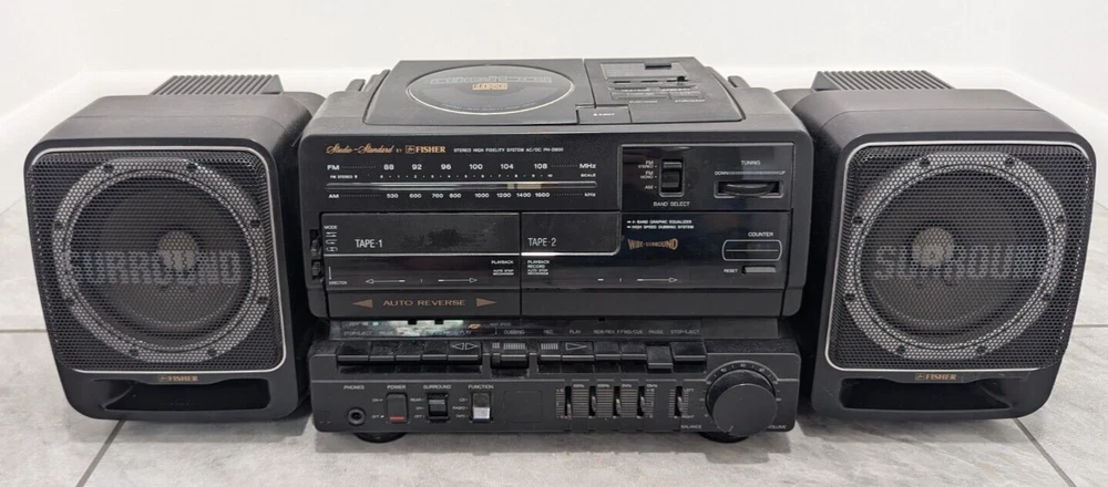 VTG RARE 1990 Fisher Boombox PH-D800 Dual Cassette CD Defects RADIO WORKS In good condition with no major physical damage. This has been tested and only the radio currently works. **THE CD AND TAPE PLAYERS DO NOT WORK** The speakers work fine with the AM & FM Radio. Sold as is. Please see photos for more details!