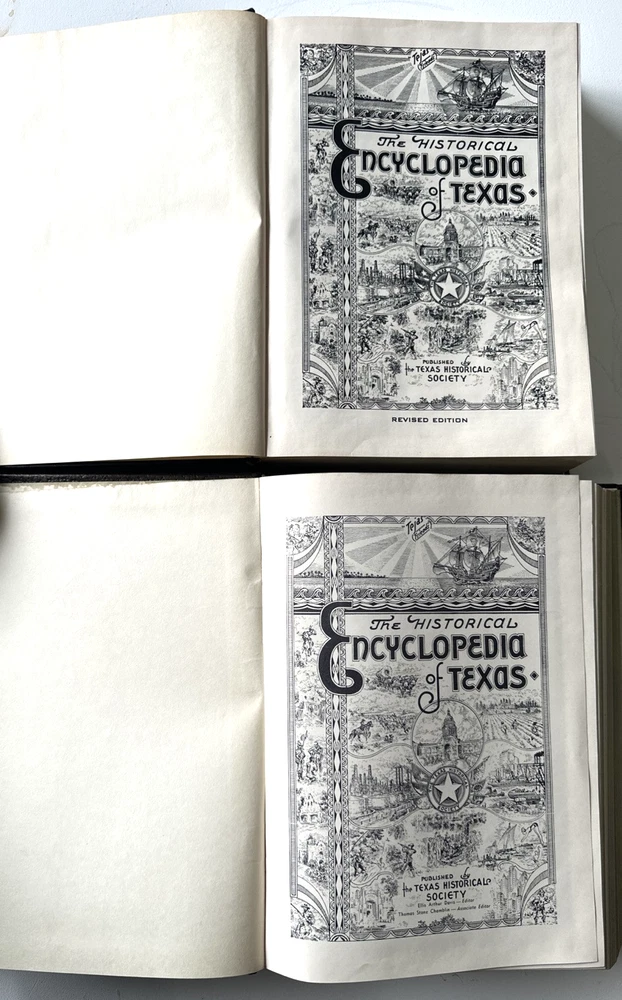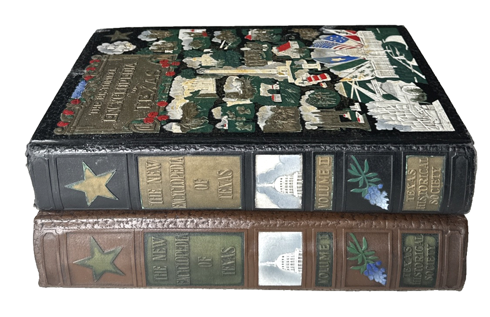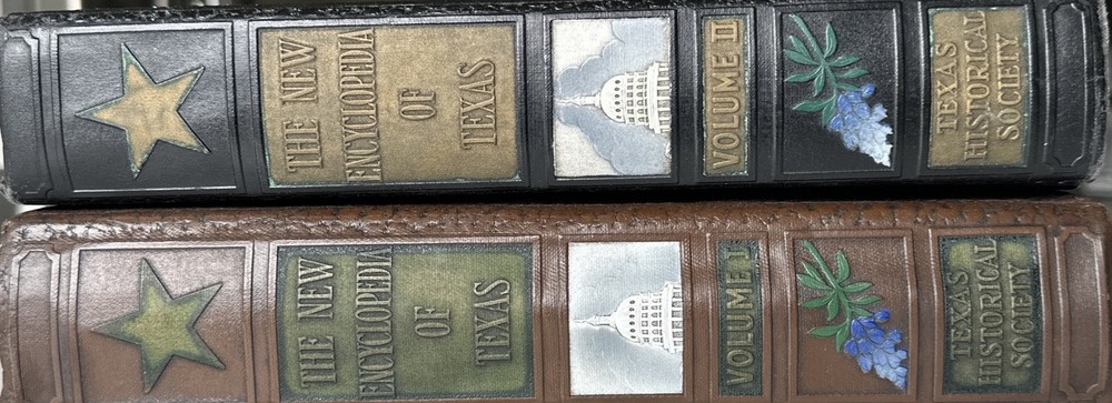 VTG THE HISTORICAL ENCYCLOPEDIA OF TEXAS Volumes 1 & 2 1940s Leather...