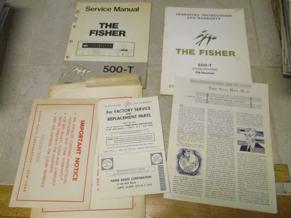 This is a vintage lot of the fisher 500-t stereophonic fm receiver operating instructions and service manual....
